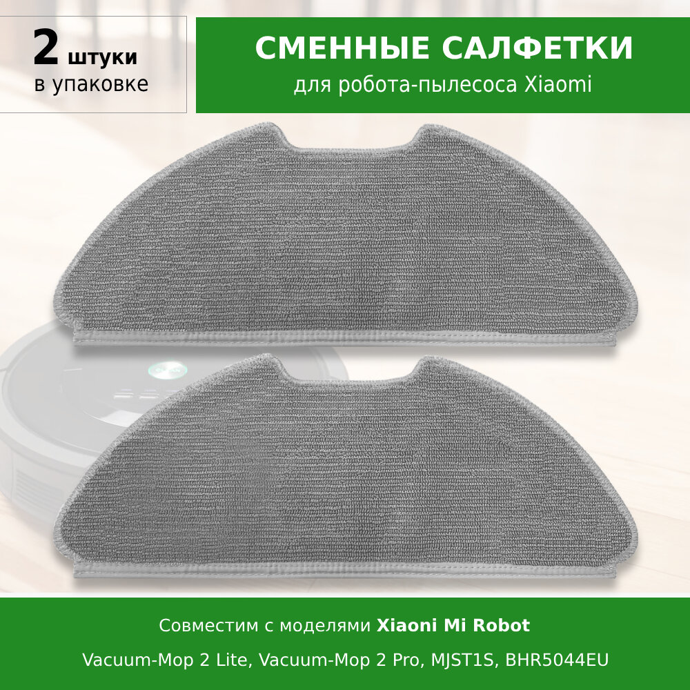 Сменные салфетки МОП (2 шт) для робота-пылесоса Xiaomi Mi Robot Vacuum-Mop 2 Lite, Vacuum-Mop 2 Pro, MJST1S, BHR5044EU информация: