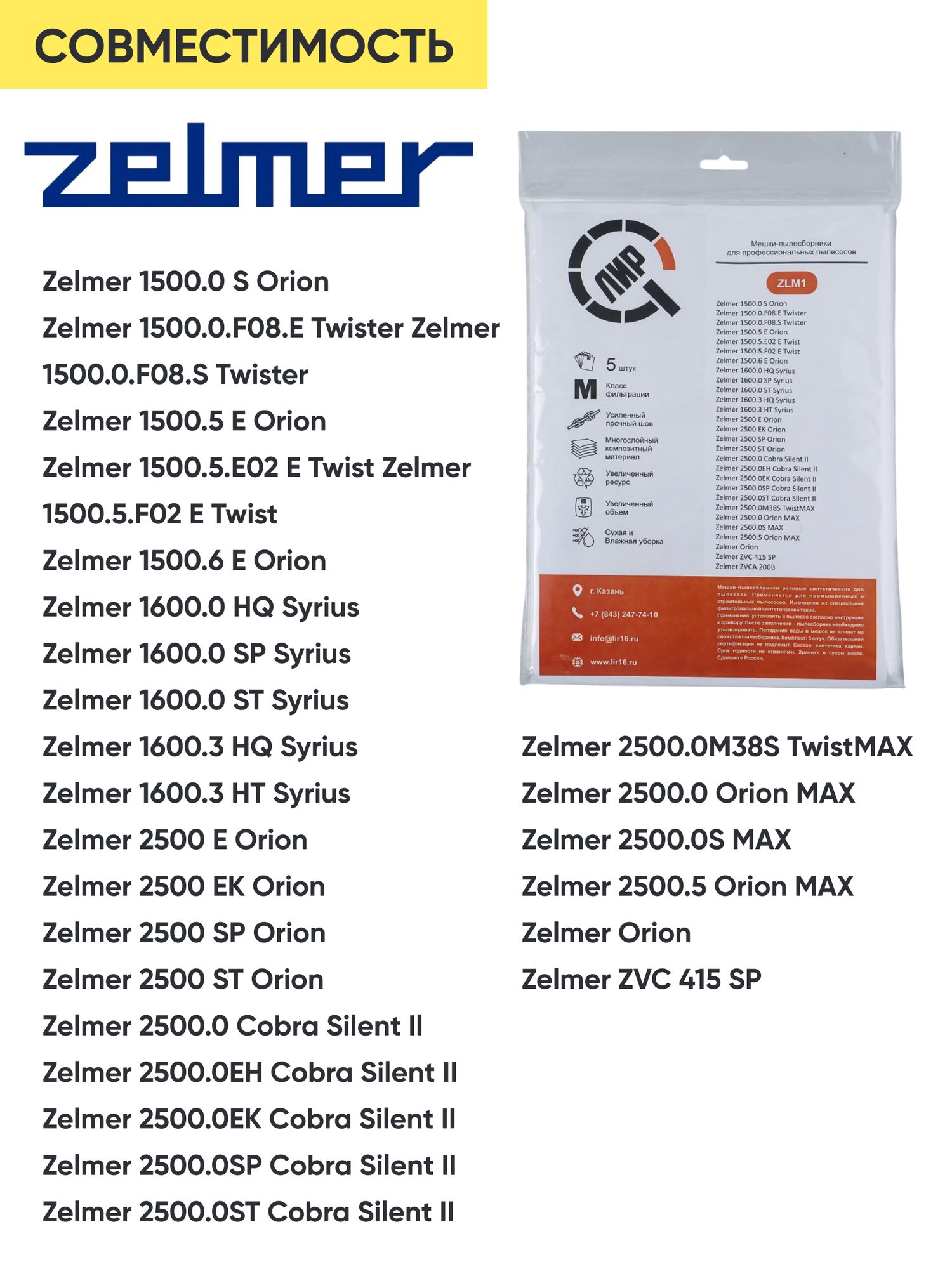 Мешки для пылесосов "ZELMER", одноразовые, 5 шт информация: