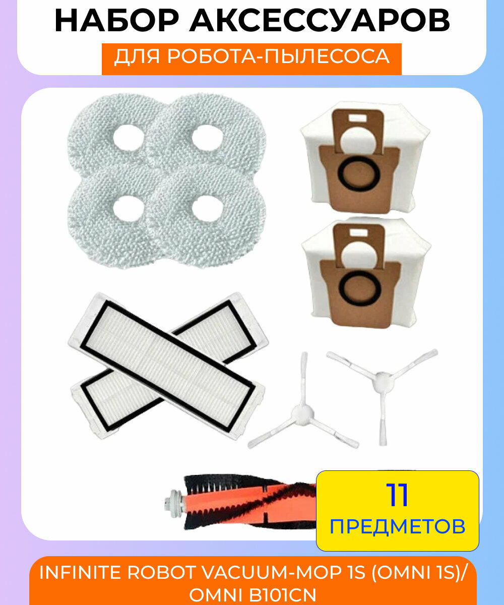 Набор аксессуаров lля робот-пылесосf Xiaomi , Infinite Robot Vacuum-Mop 1S (OMNI 1S)/OMNI B101CN: основная щетка, боковая щетка белая 2шт, нера-фильтр 2 шт, салфетка из микрофибры 4 шт, мешки для пыли 2шт. информация: