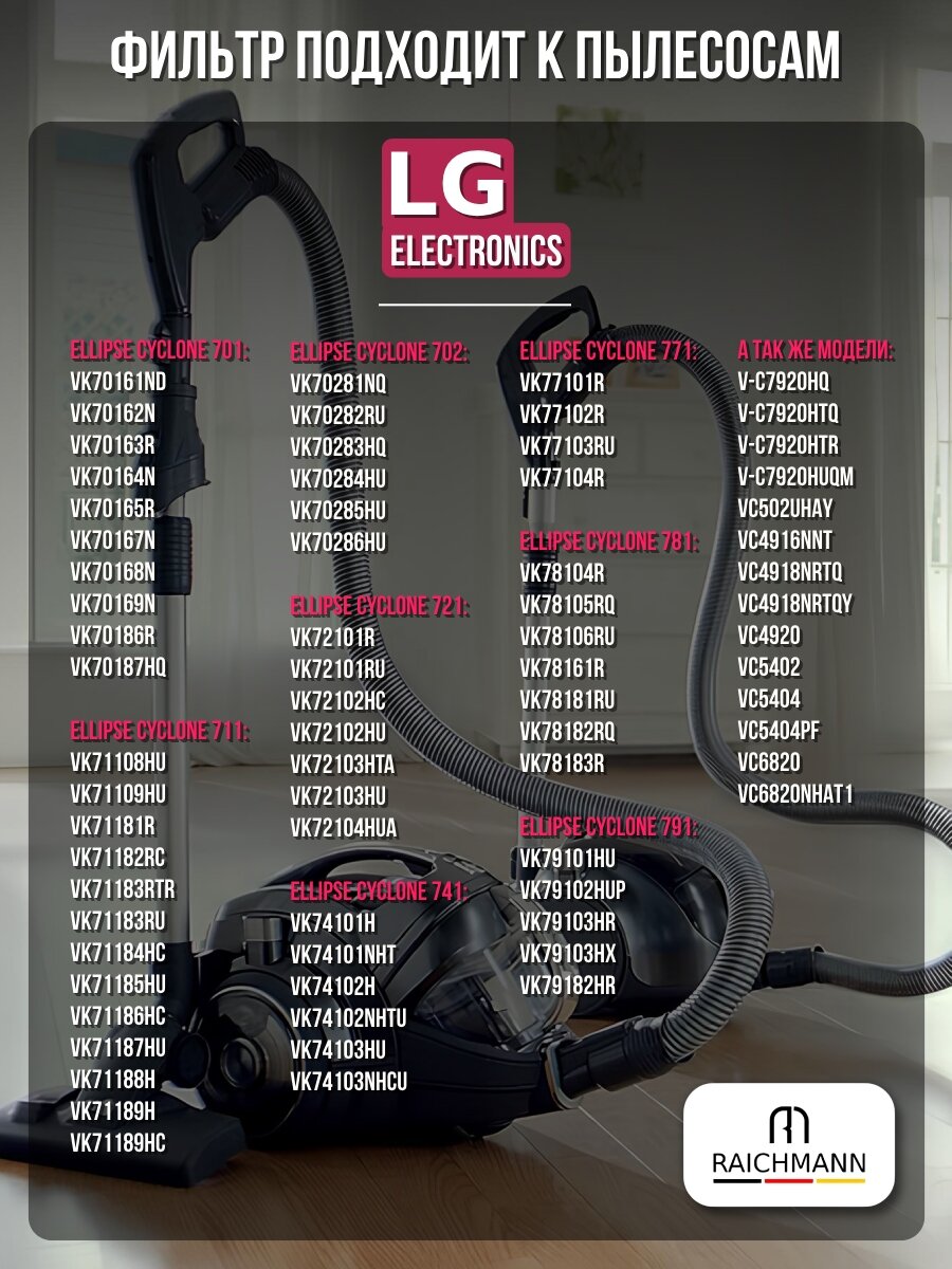 HEPA фильтр для пылесоса LG серии VK701, VK702, VK711, VK721, VK741, VK771, VK781, VK791 информация: