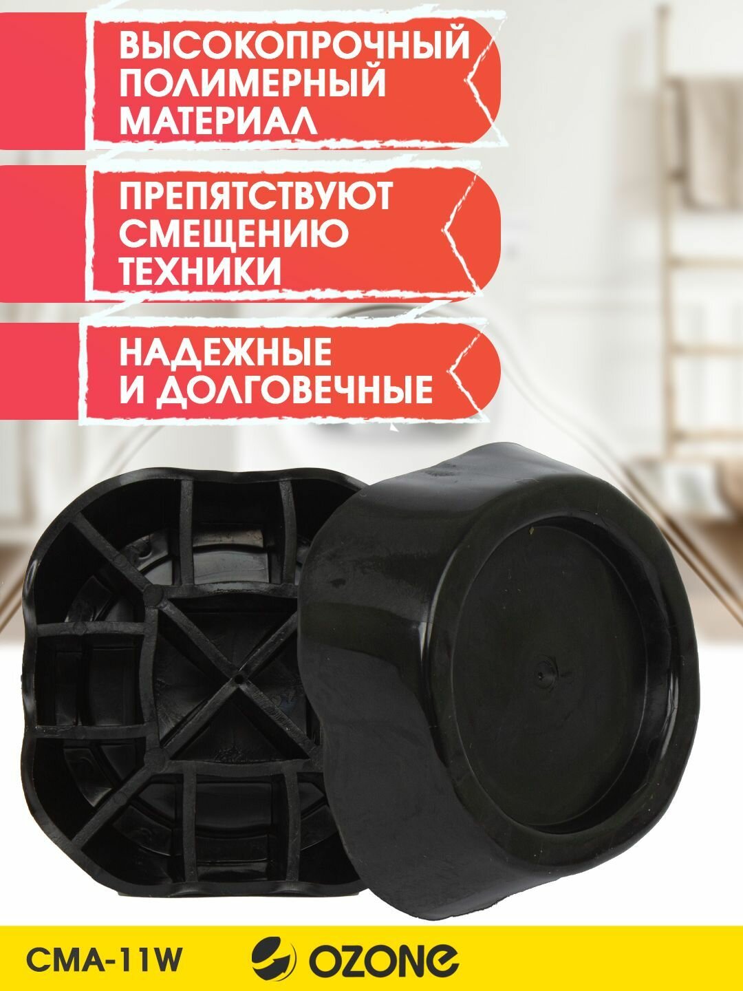 Антивибрационные подставки для стиральных машин и холодильников, 4 шт, цвет черный, бренд: OZONE, CMA-11W информация: