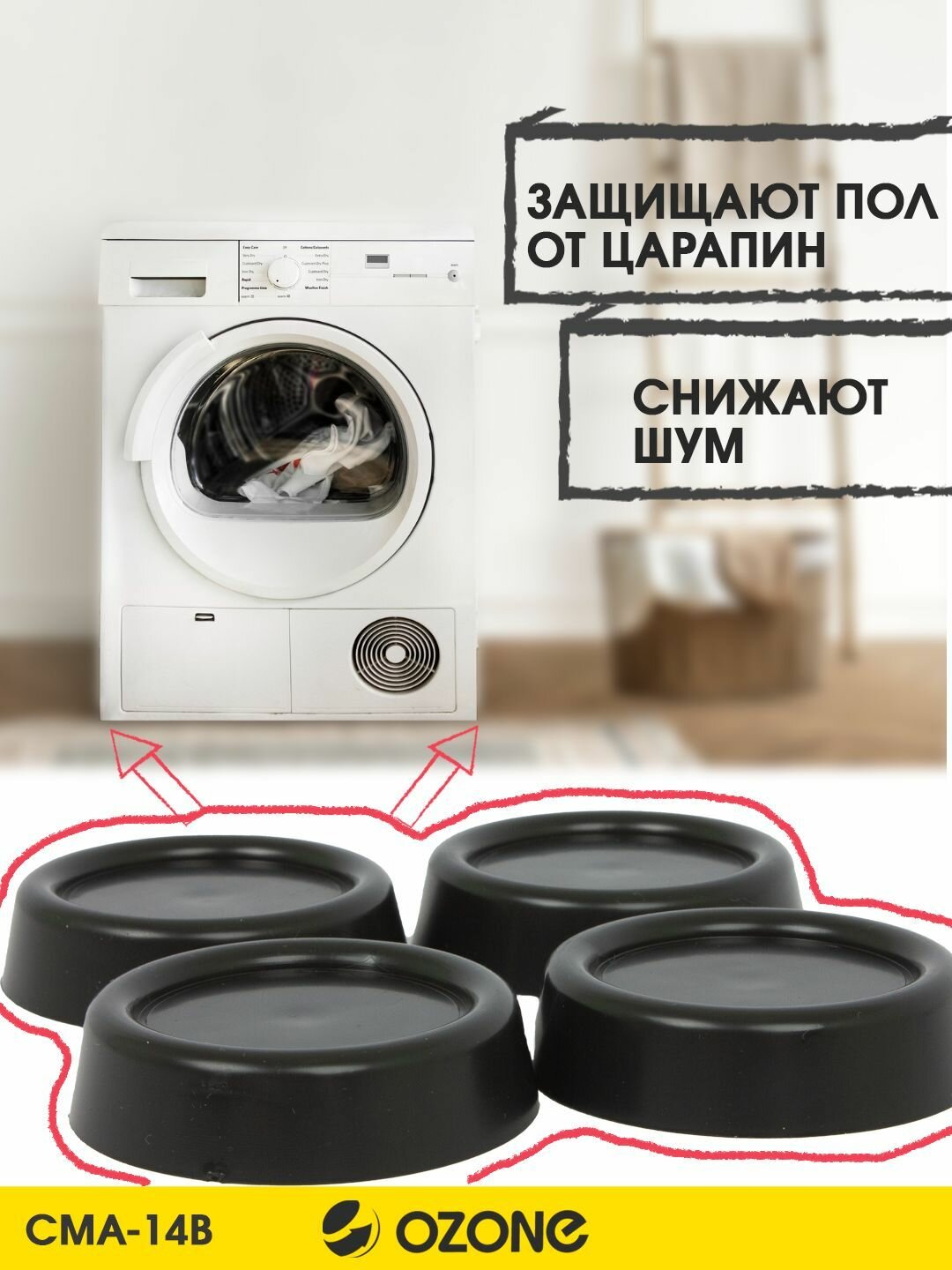 Антивибрационные подставки для стиральных машин и холодильников, 4 шт, цвет черный, бренд: OZONE, CMA-11W