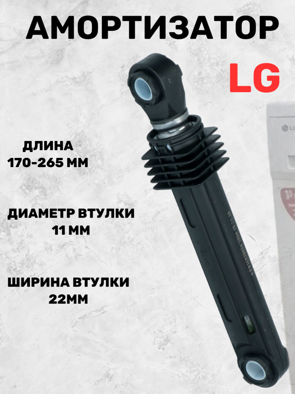 Отзывы на Амортизатор стиральных машин LG 4901ER2003A 100N, L-170-265мм, диаметр втулки-11мм, ширина втулки-22мм