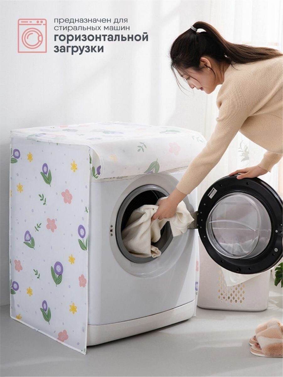 10 цен на Чехол универсальный для стиральной машины, размер 58x62x85 см, водонепроницаемый, горизонтальной загрузки, принт тюльпанчики, на молнии