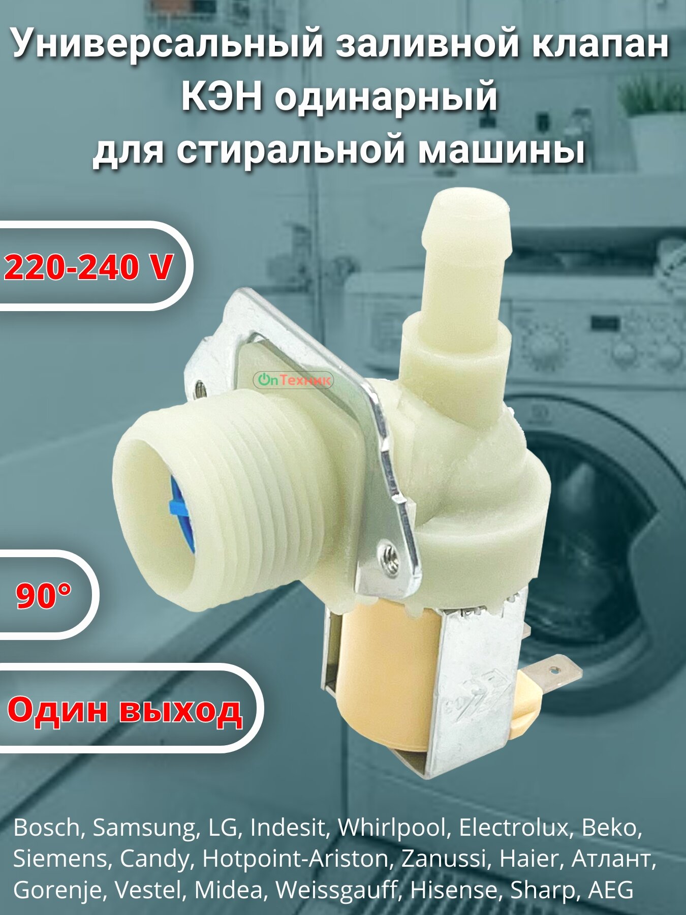 Универсальный заливной клапан КЭН одинарный для стиральной машины, 1Wx90°, 1 отвод под 90 градусов информация: