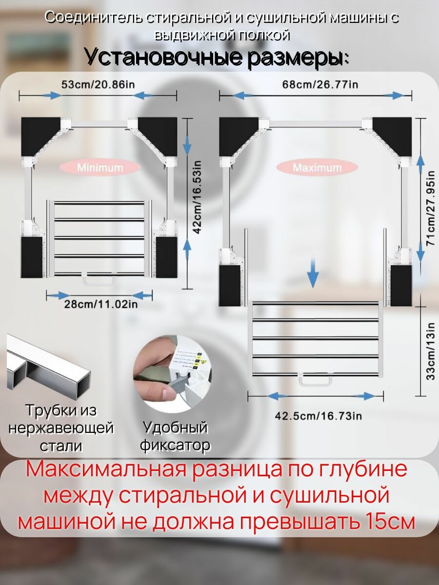 Соединительный элемент для сушильной и стиральной машины с выдвижной полкой универсальный информация: