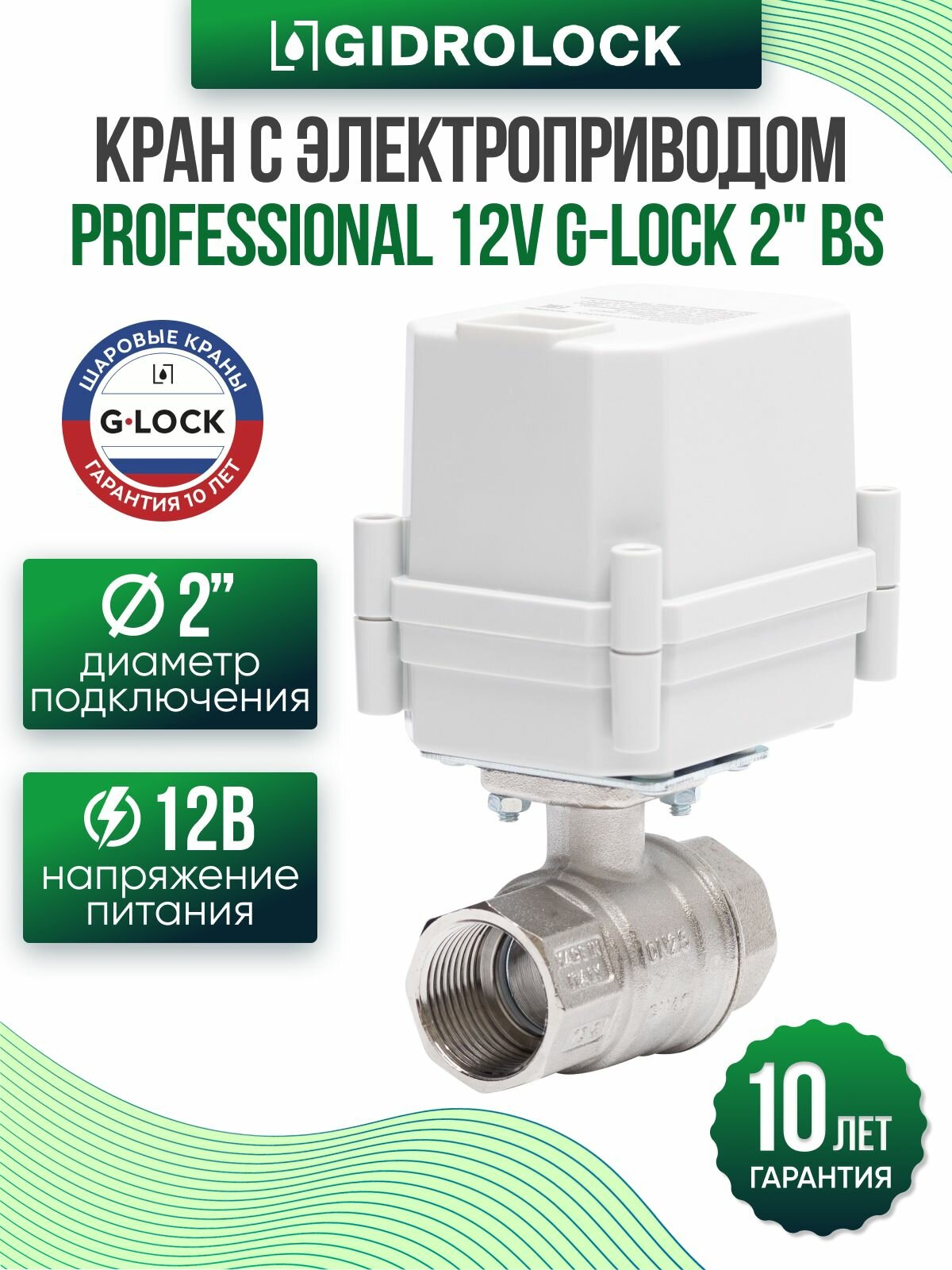 Кран шаровой с электроприводом Gidrolock Professional 12V G-Lock 2" BS информация: