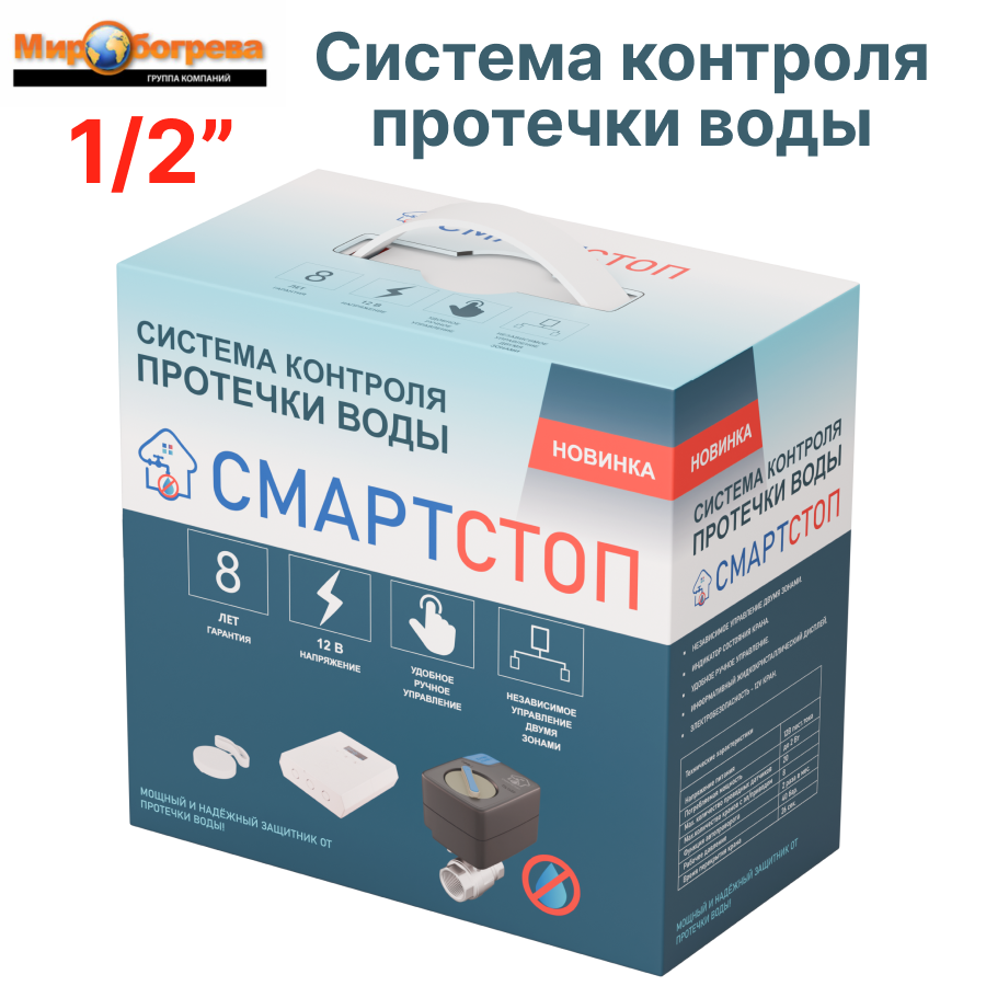 Характиристики этого товара не найдены!Отзывы на Комплект контроля протечки воды "СМАРТСТОП" 1/2, проводные датчики