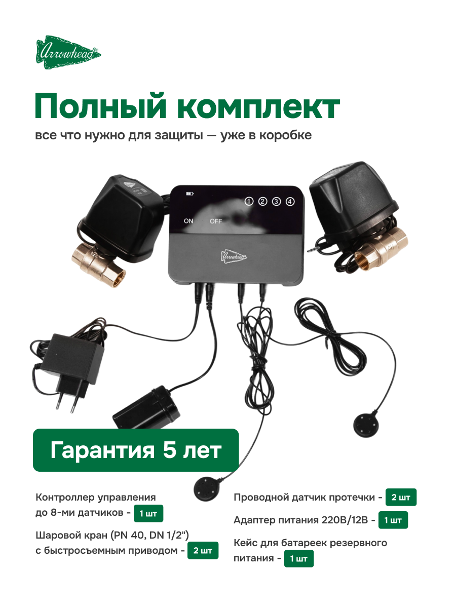 Отзывы на Комплект системы защиты от протечек ARROWHEAD с проводными датчиками, 1/2".