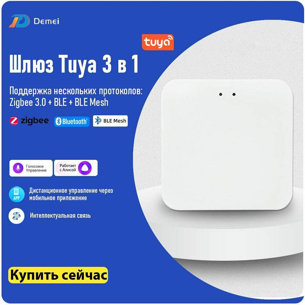 Шлюз мультимодальный 3 в 1 Tuya ZigBee 3.0 + Bluetooth + BLE Mesh, Smart life беспроводной хаб WIFI для умного дома информация: