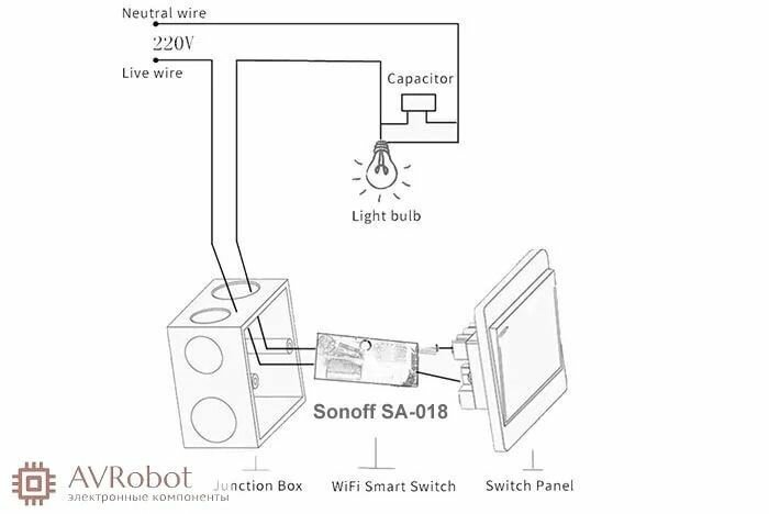 Sonoff SA-018 умный выключатель света без нейтрального провода