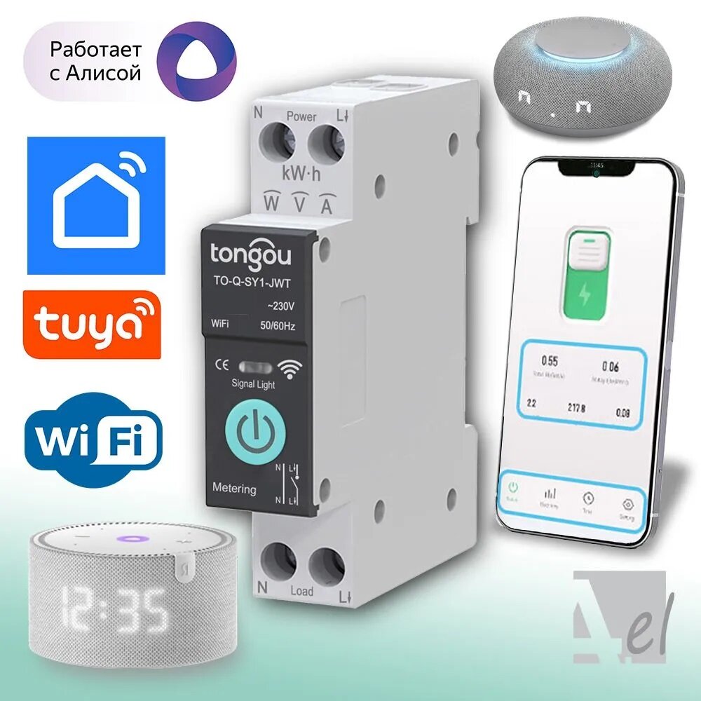Умный автоматический выключатель-реле с WiFi на Din рейку 25A. Работает с Алисой информация: