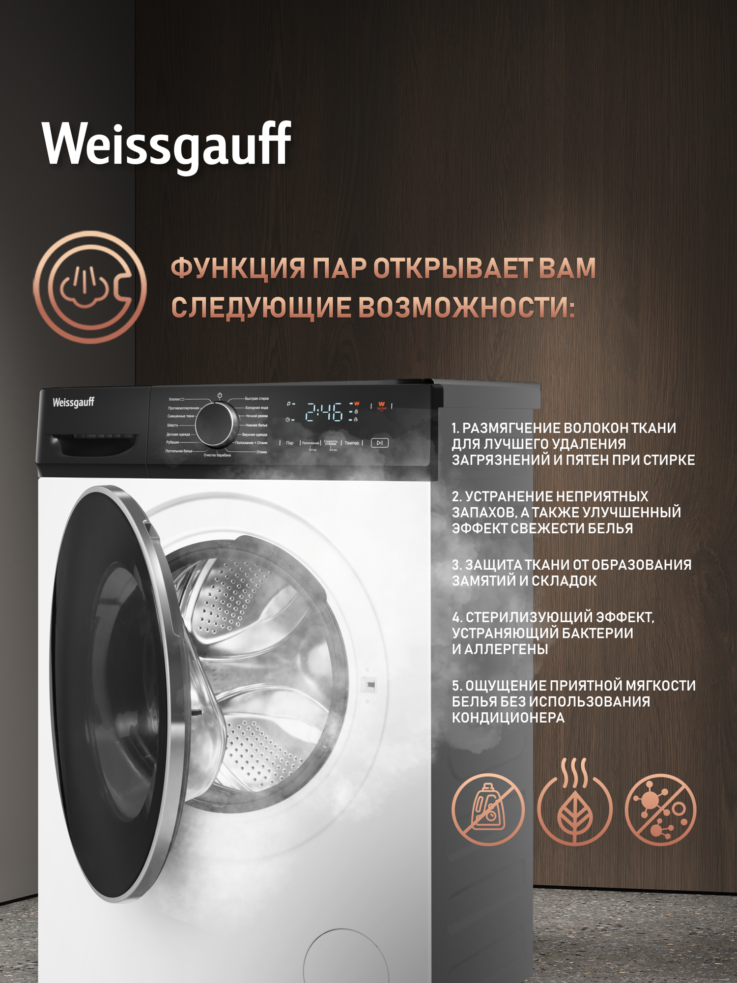 Cтиральная машина с инвертором и паром Weissgauff WM 4627 Touch Inverter Steam информация: