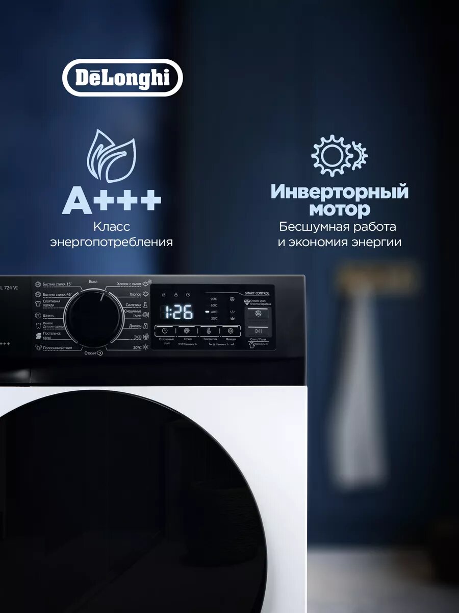 10 цен на Стиральная машина DeLonghi JULIA L 724 VI 40 см, 7 кг, инверторный мотор, отсрочка старта, 15 программ, с функцией пара