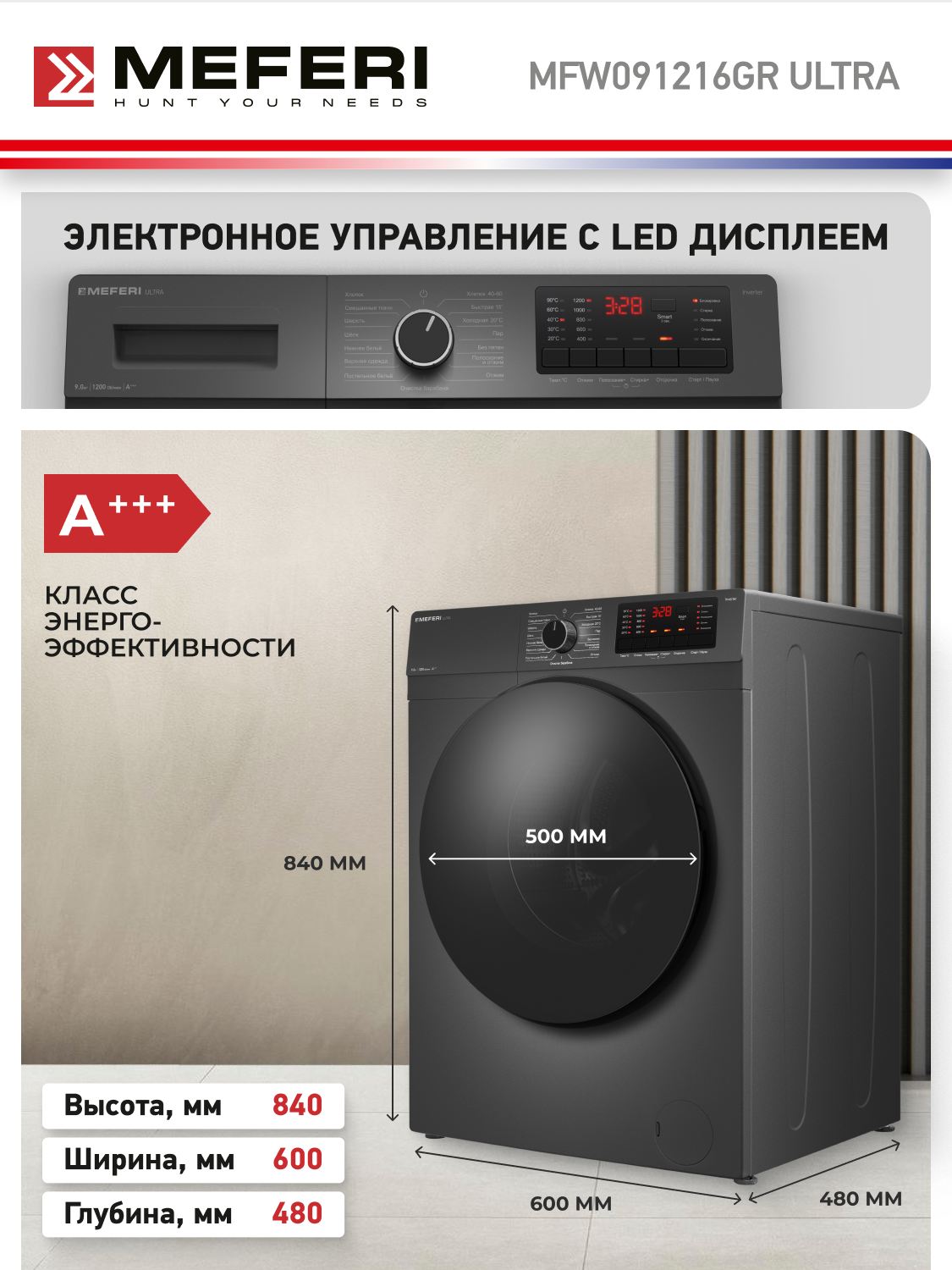 Стиральная машина с инвертором и паром отдельностоящая MFW091216GR ULTRA информация: