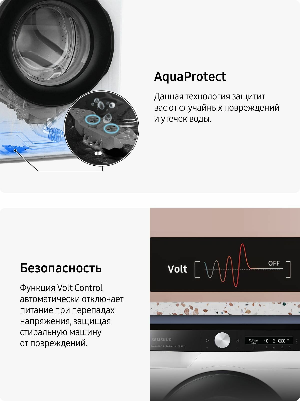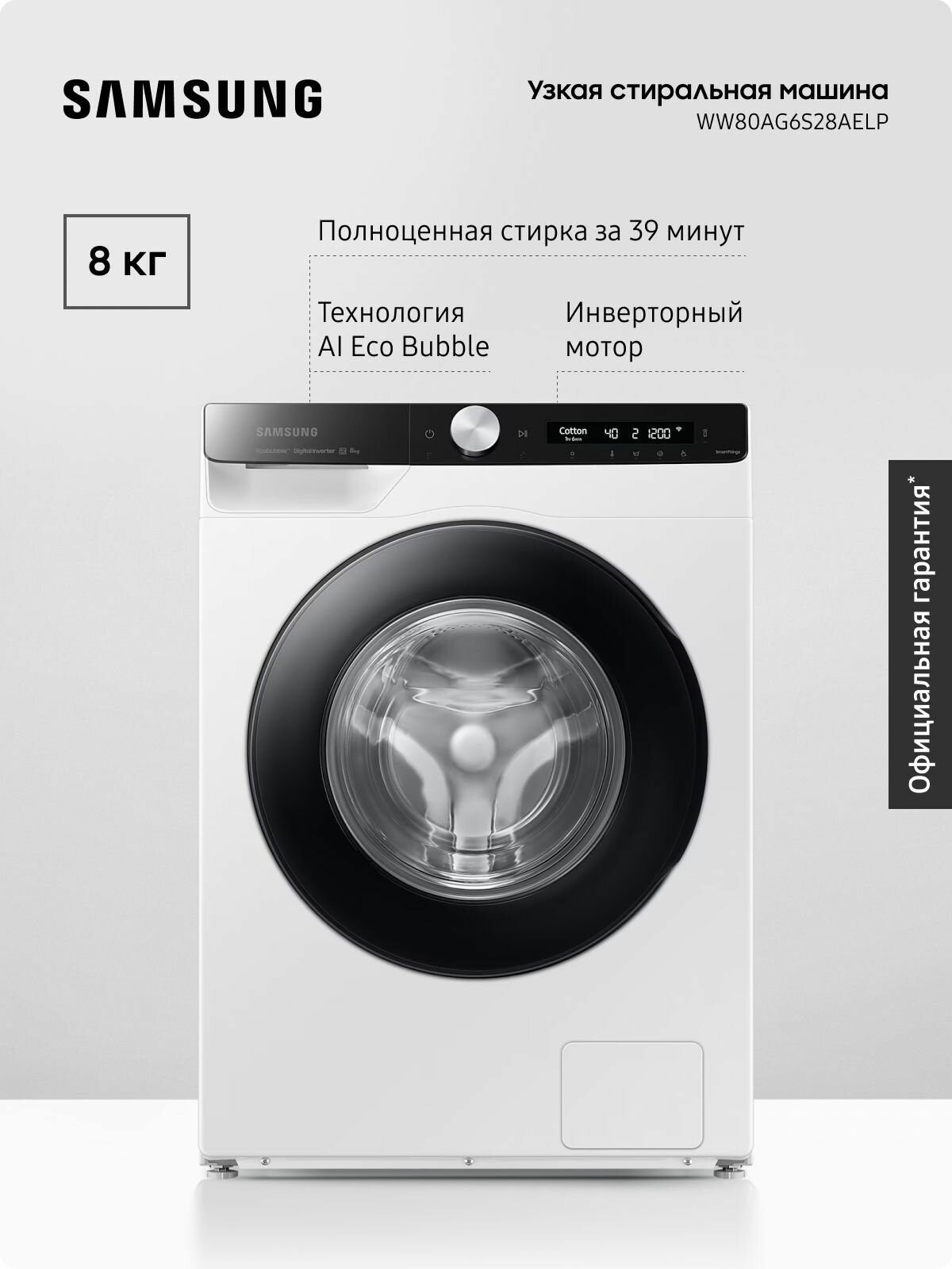 Узкая стиральная машина Samsung WW80AG6S28AELP, 8 кг, с электронным управлением, инверторным мотором информация: