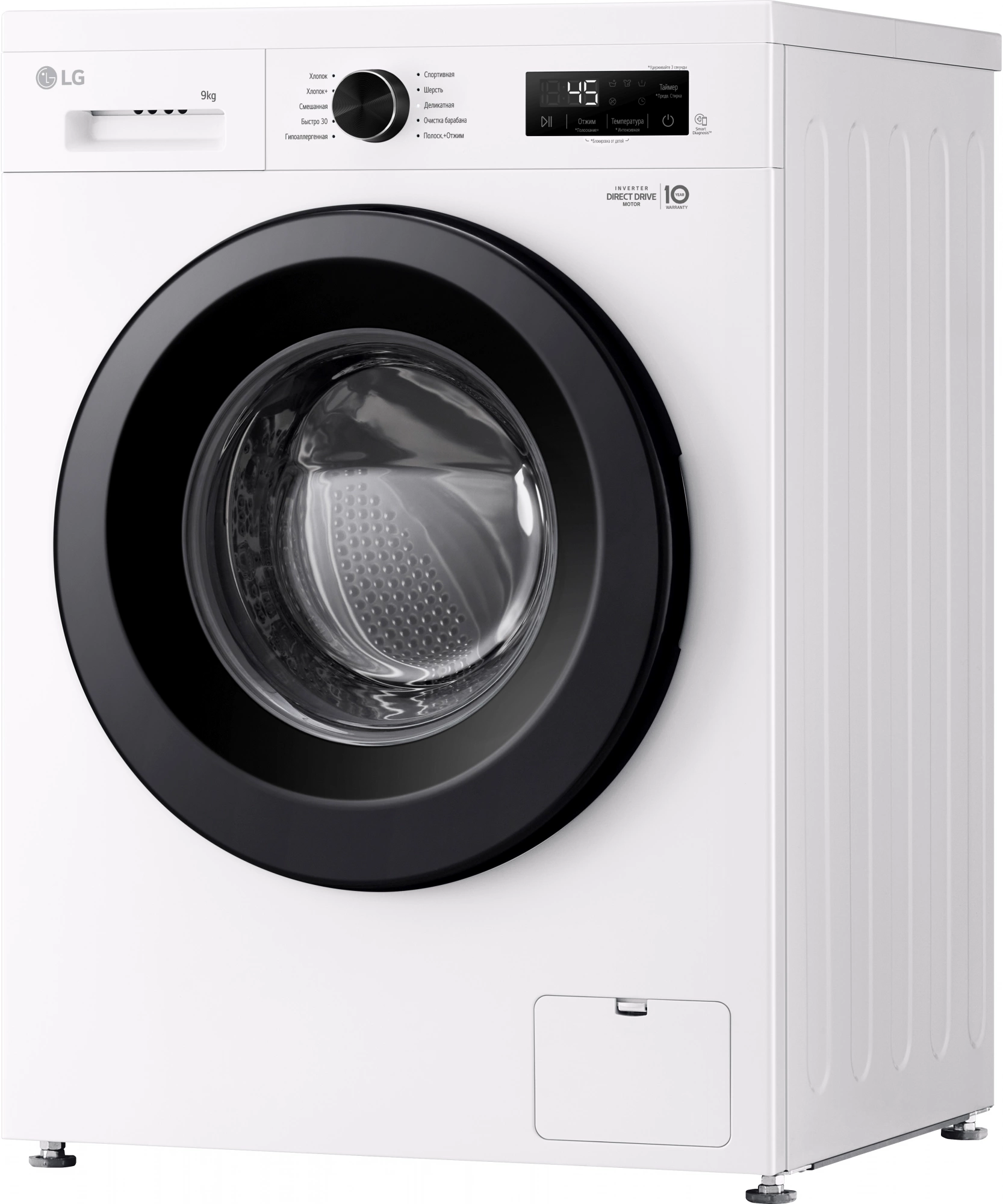10 цен на Стиральная машина LG F2Y1VS6W, загрузка 9 кг, с паром, инверторный двигатель, белая/черная