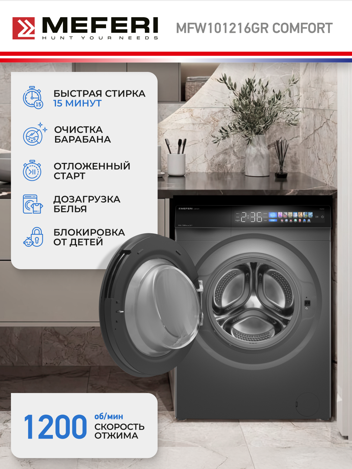 Стиральная машина с инвертором и паром отдельностоящая MFW101216GR COMFORT информация: