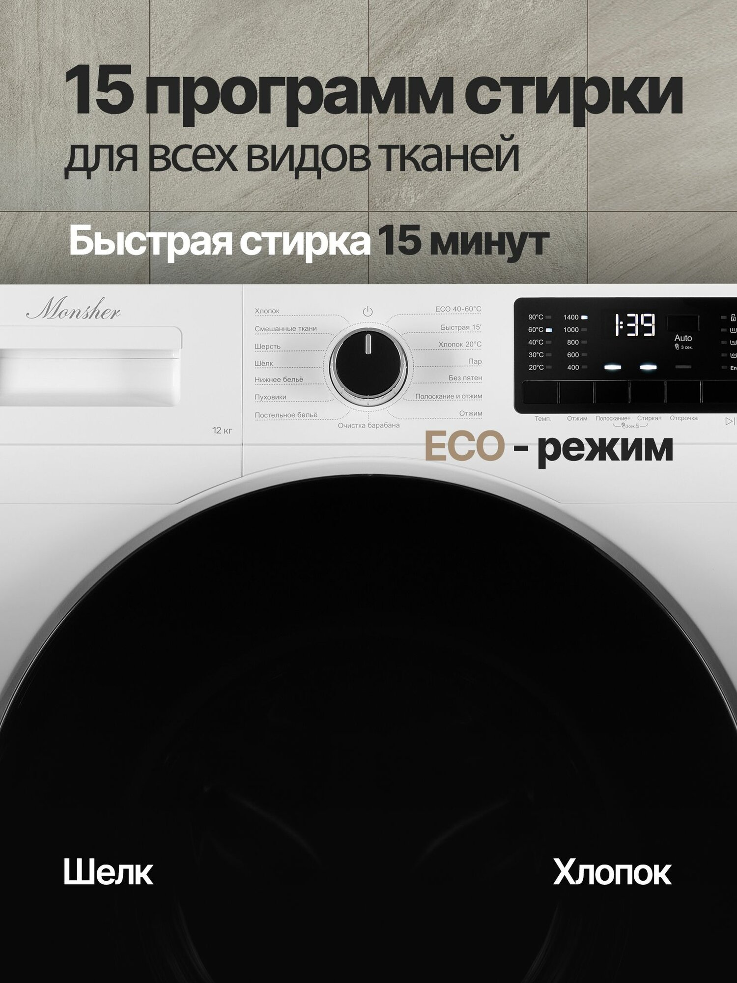 10 цен на Стиральная машина Monsher MWM 595 Blanc, A+++ класс энергопотребления, 12кг, с отложенным стартом
