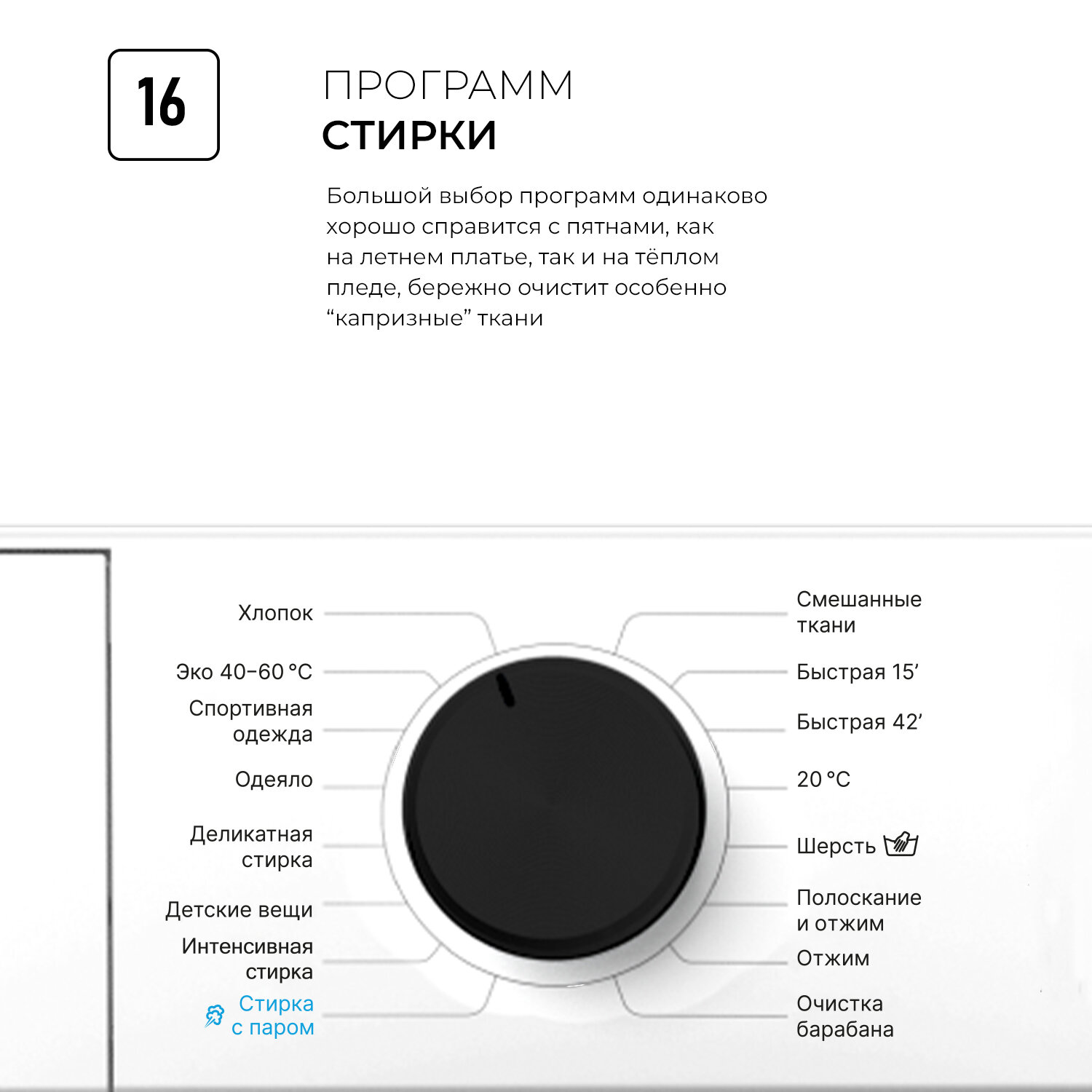Стиральная машина с инвертором и паром LEX LWM06010BLIDSMALL, LED, Загрузка 6 кг, Скорость отжима 1000 об/мин, Количество программ 16 информация: