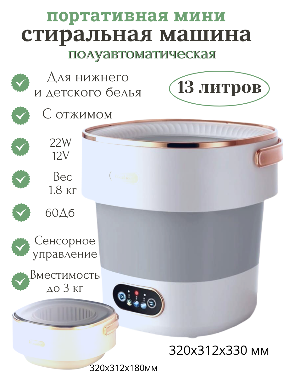 Портативная стиральная машина Homzon, 12 литров, сенсорное управление, 3 программы стирки, отжим, бело-серая информация: