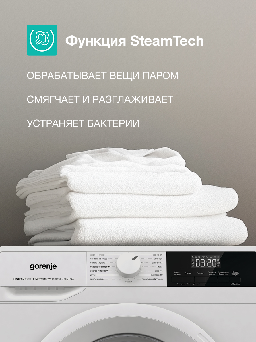Стиральная машина с сушкой Gorenje W2D2A164ADSS/C, загрузка 10 кг, 1400 об/мин