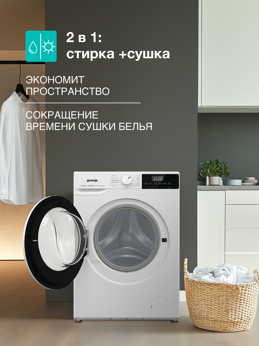 Стиральная машина Gorenje W3D2A854ADS/R кл: B фронт. макс:8кг (с сушкой) белый информация: