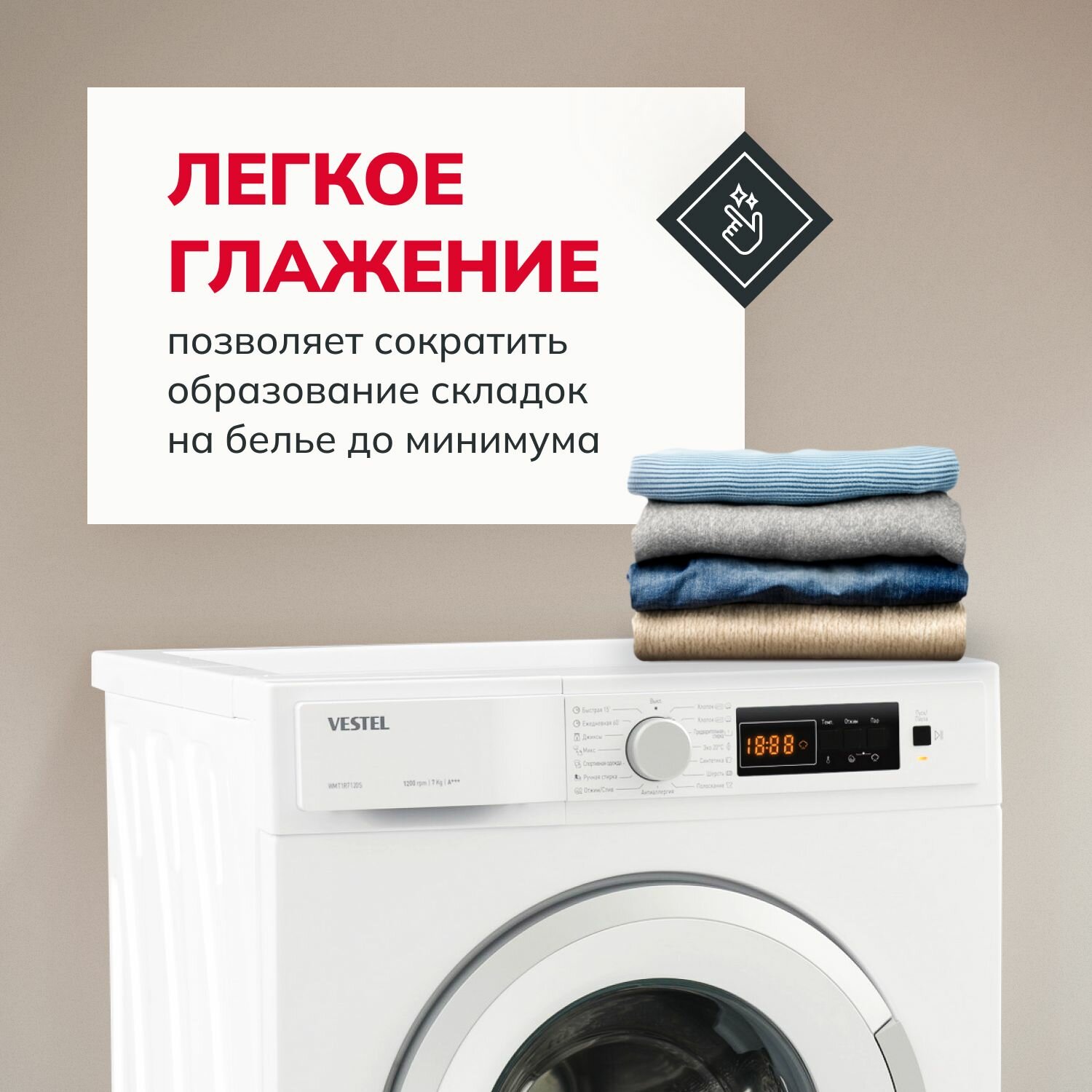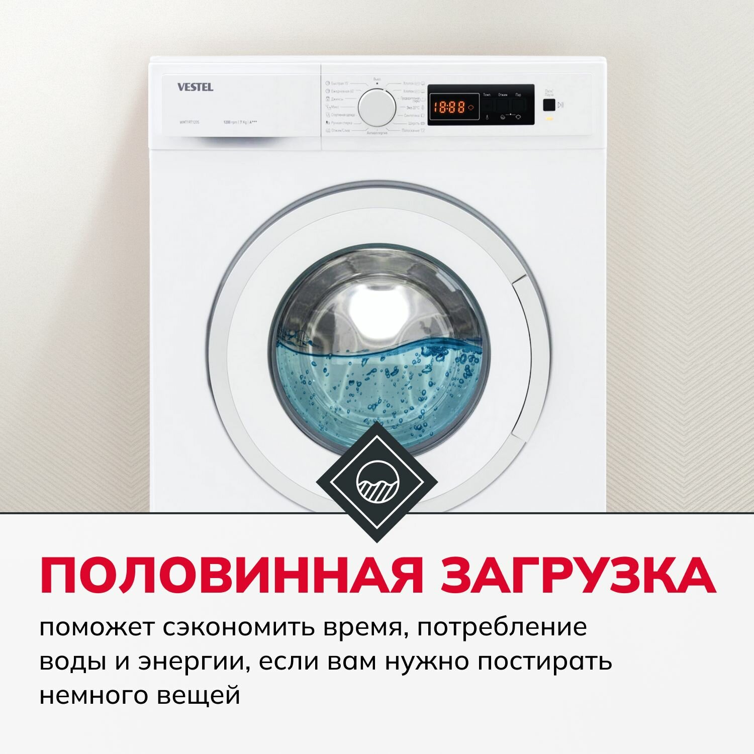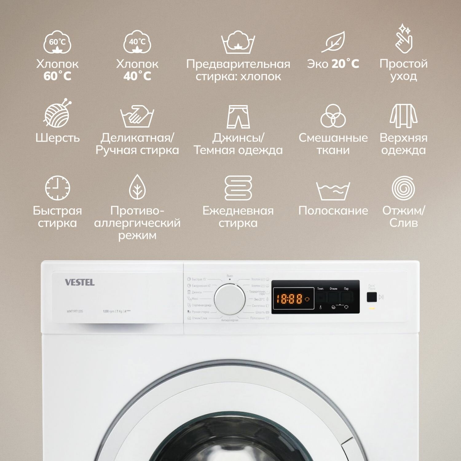 10 цен на Стиральная машина Vestel WM7T1120S, загрузка 7кг, 15 программ, до 1200 об/мин, блокировка управления, белая
