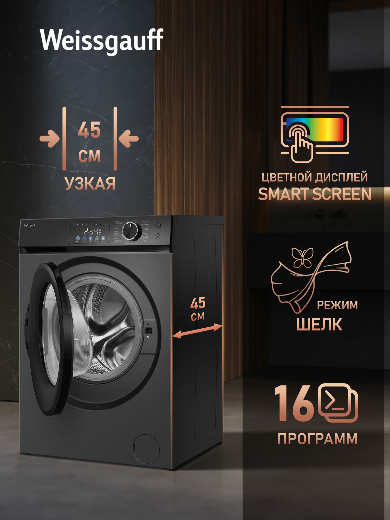 Отзывы на Cтиральная машина с инвертором и паром Weissgauff WM 45126 Inverter Steam Color Touch Grey