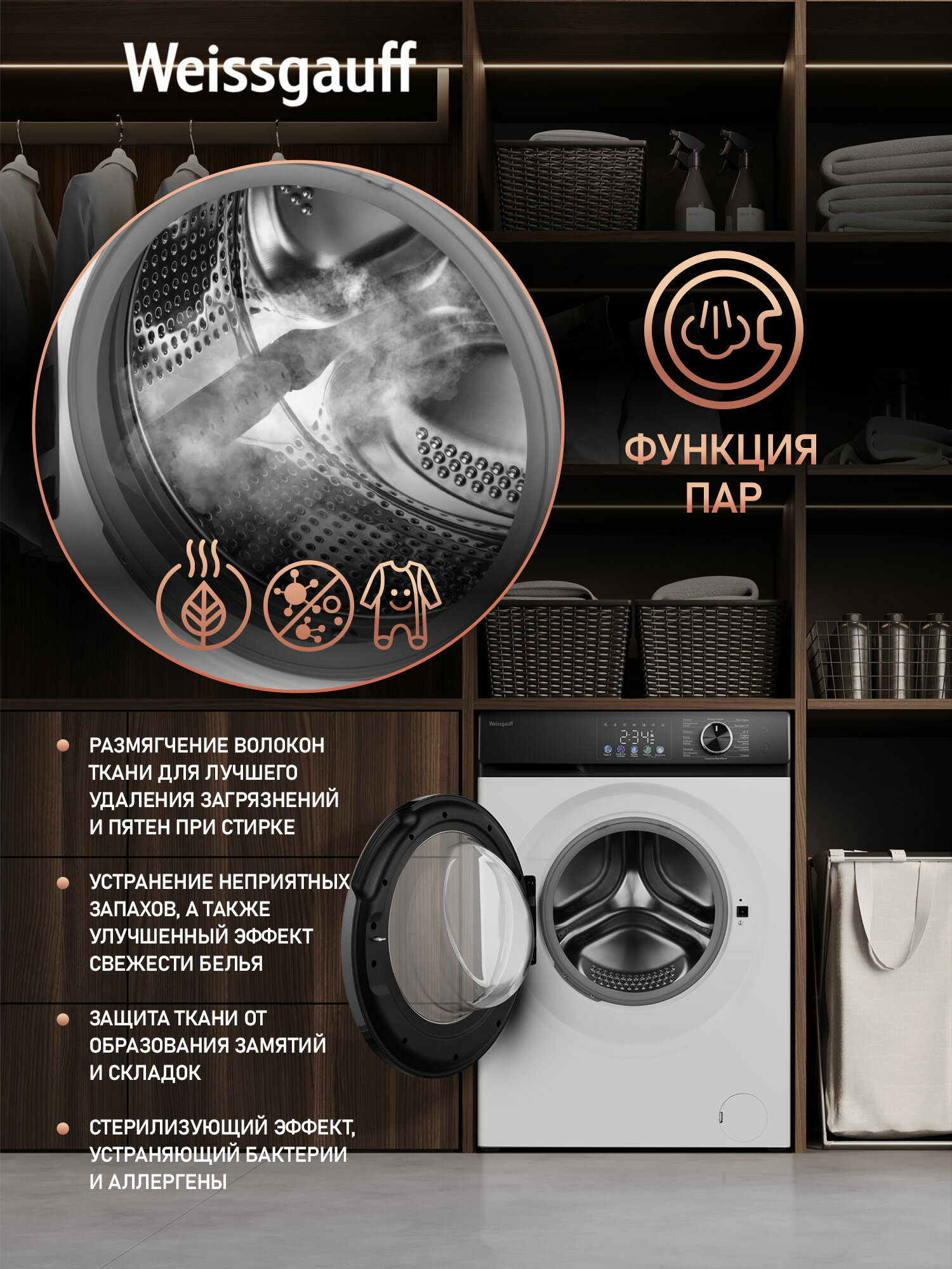 Cтиральная машина с инвертором и паром Weissgauff WM 45126 Inverter Steam Color Touch информация: