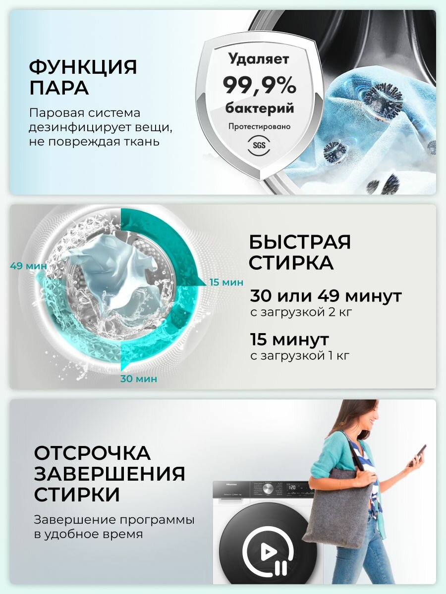 Стиральная машина Hisense WF3S7021BW2, инверторный мотор, функция пара, загрузка 7 кг, 16 автопрограмм информация:
