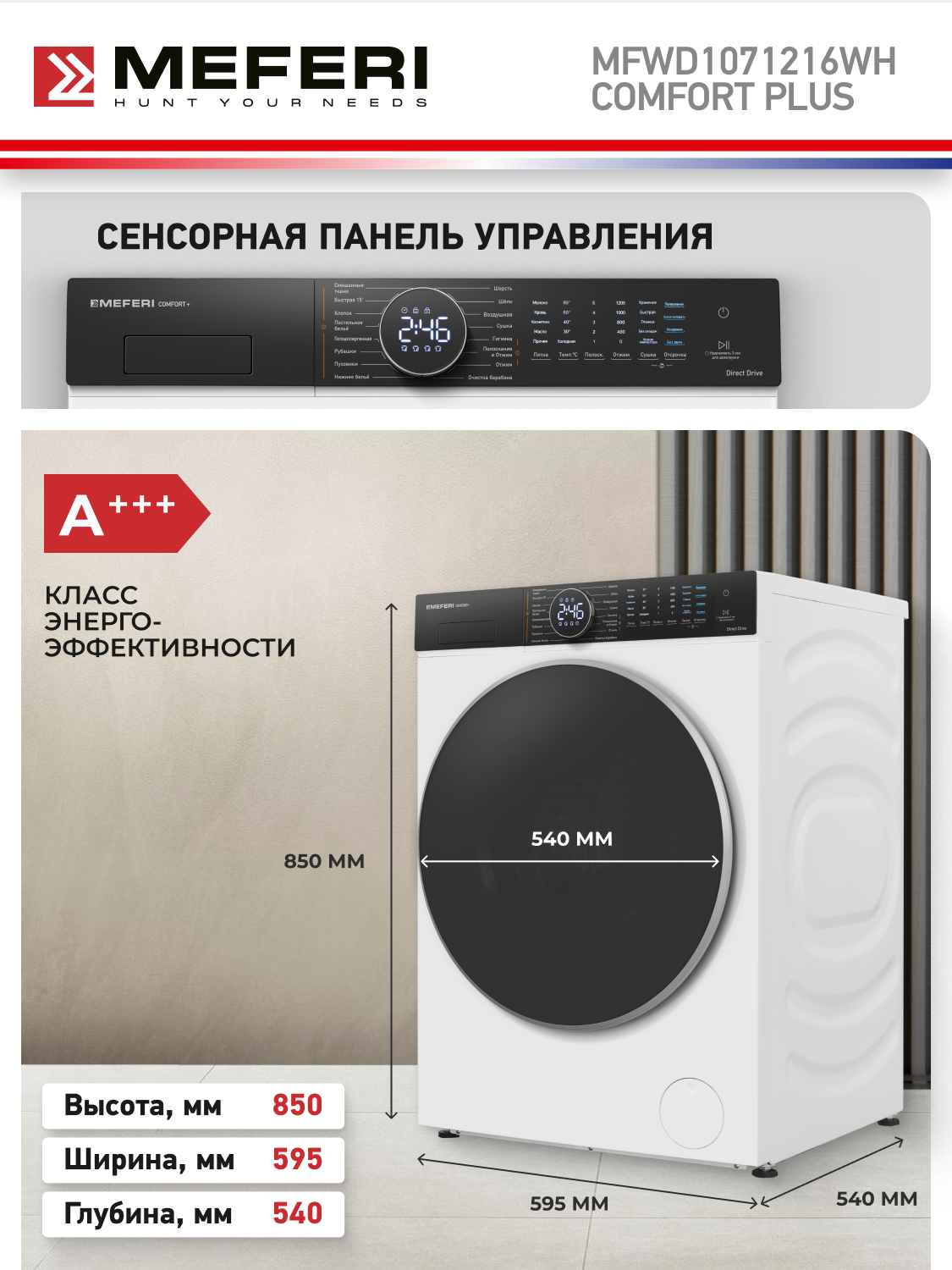 Стиральная машина с сушкой, инвертором и паром отдельностоящая MFWD1071216WH COMFORT PLUS информация: