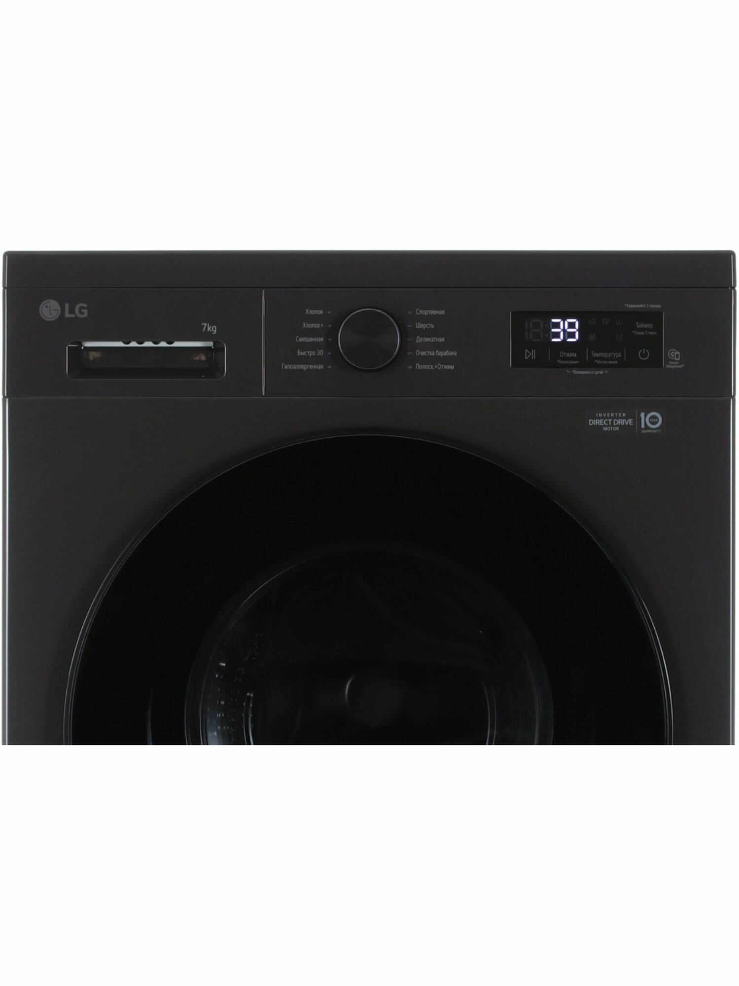 Стиральная машина LG F2Y1WS5J, загрузка 7 кг, с паром, инверторный двигатель с прямым приводом, , черная информация: