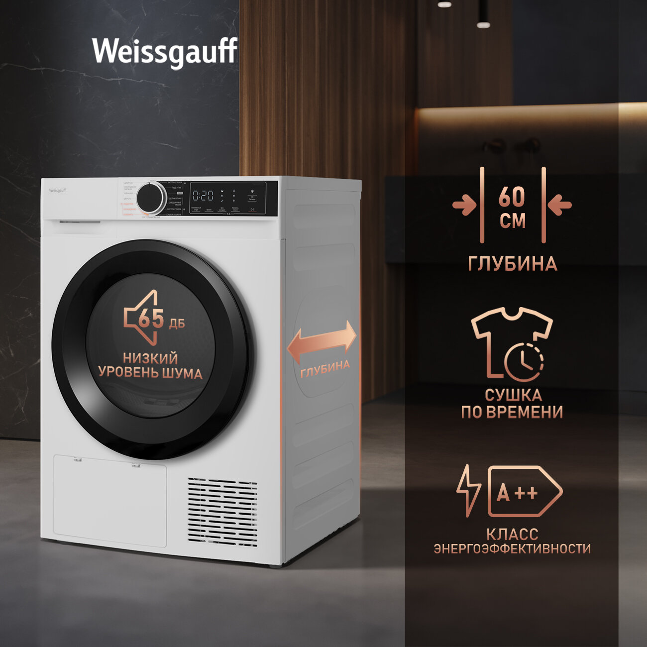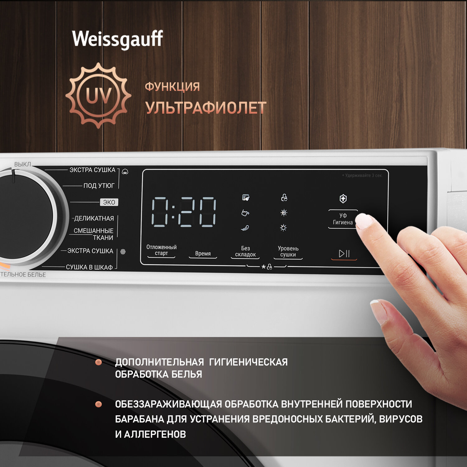Сушильная машина c ультрафиолетом Weissgauff WD 5948 Heat Pump информация: