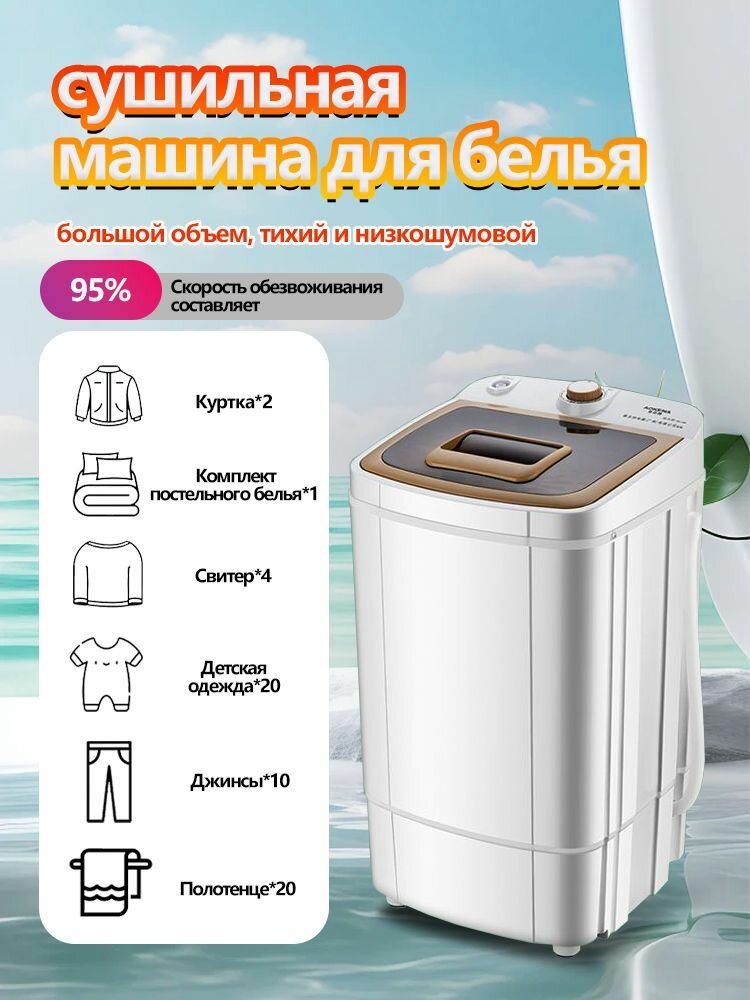 Сушильная машина для белья JUNTOU MZ147B, загрузка 9.8 кг, регулятор температуры, турбосушка, тихая работа. информация: