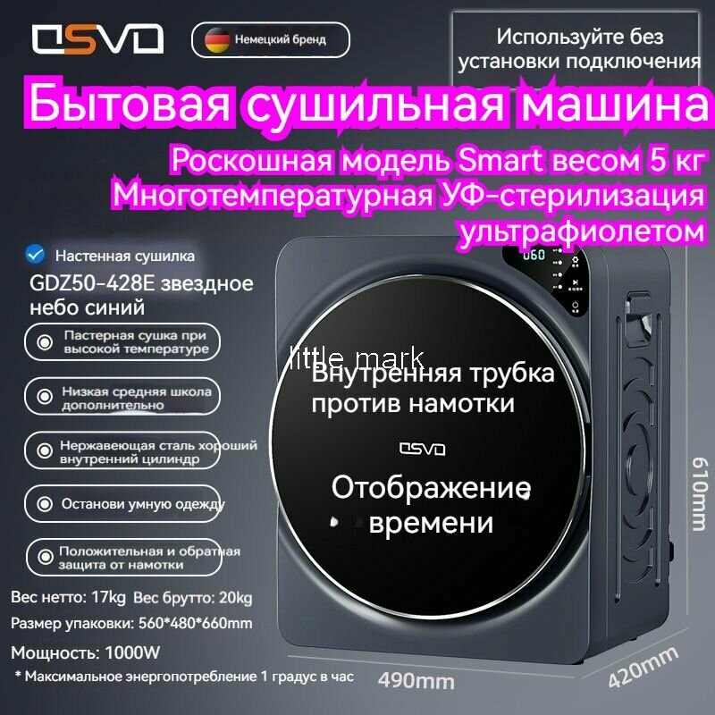 Отзывы на Сушилка Бытовая 5 кг Барабанный тип Быстрая сушилка для белья Автоматический интеллект, синий