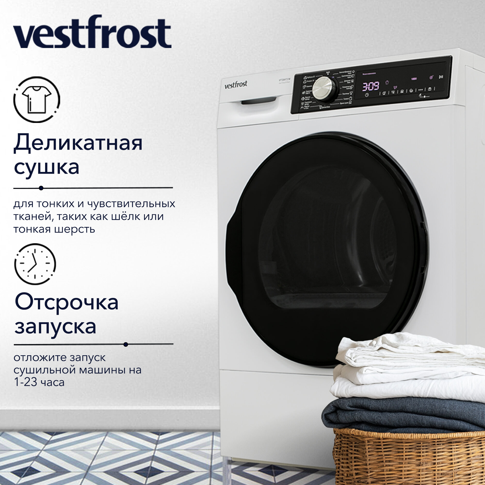 10 цен на Сушильная машина Vestfrost 8 кг, А+, 15 программ, тепловой насос, VFTD8HT31W