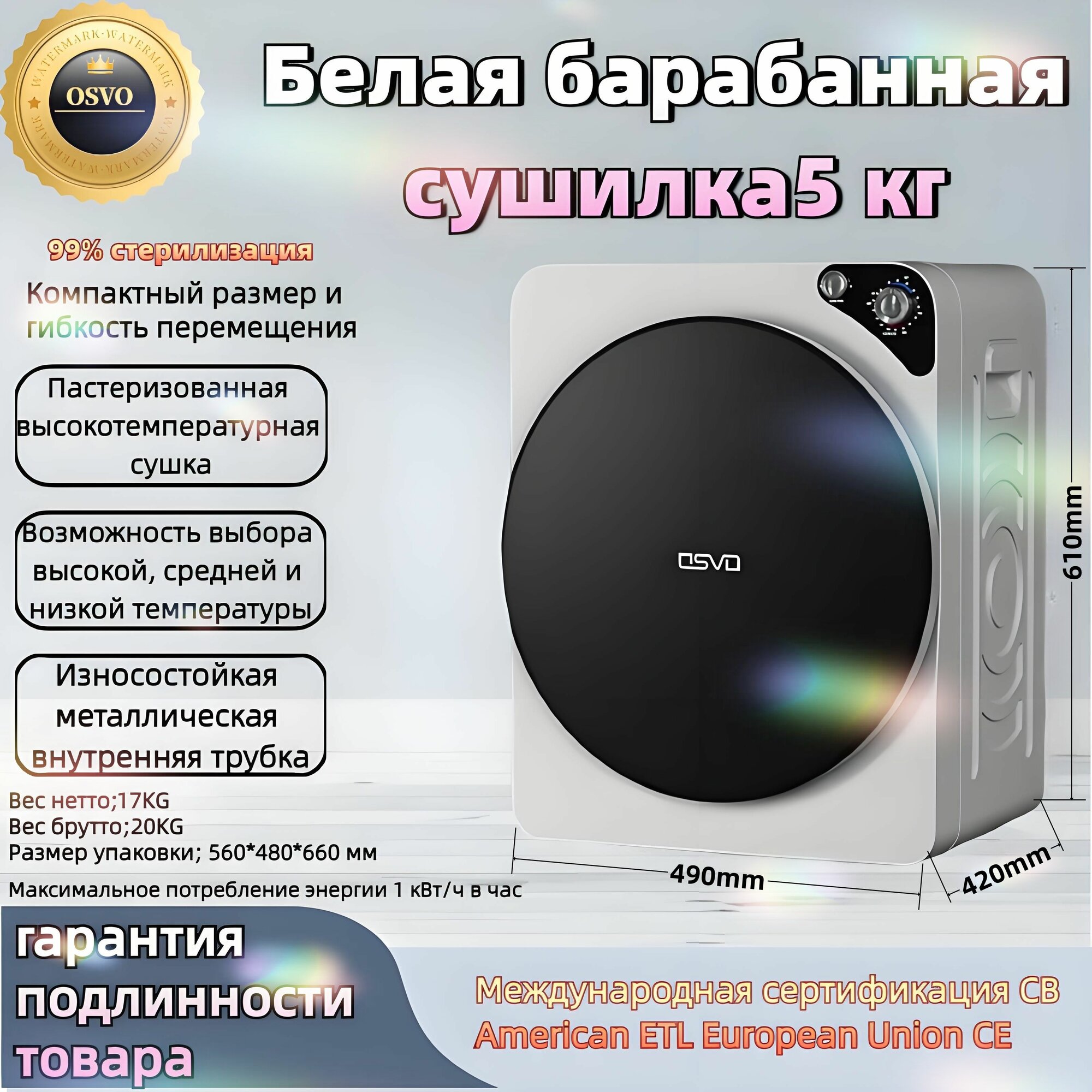 Бытовая сушильная машина, белая 5 кг с таймером и многотемпературной стерилизацией Износостойкий металлический внутренний барабан Plug & Play информация: