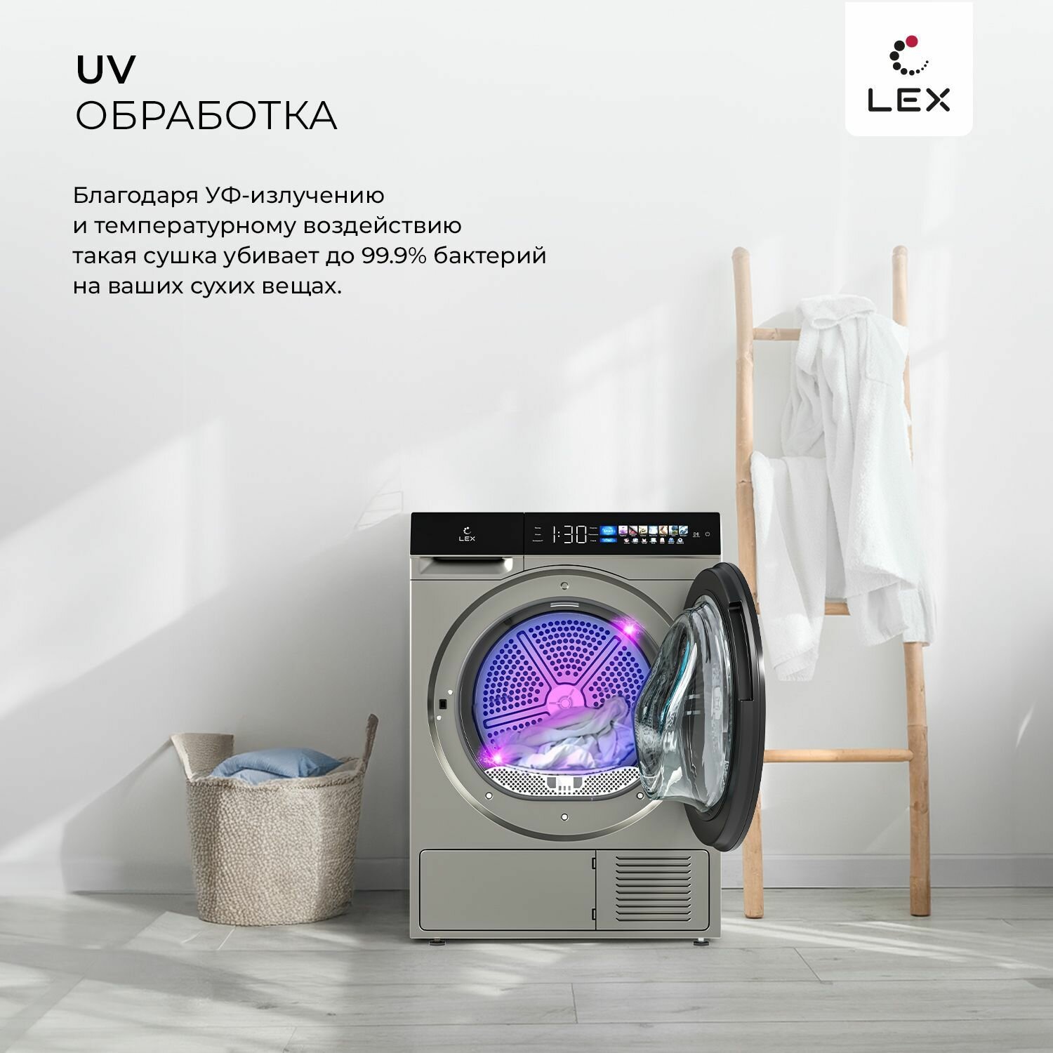 10 цен на Сушильная машина Lex LDM12GrBlThD, серый, 10 кг, 16 программ, класс A++, таймер, дозагрузка белья, цветной дисплей