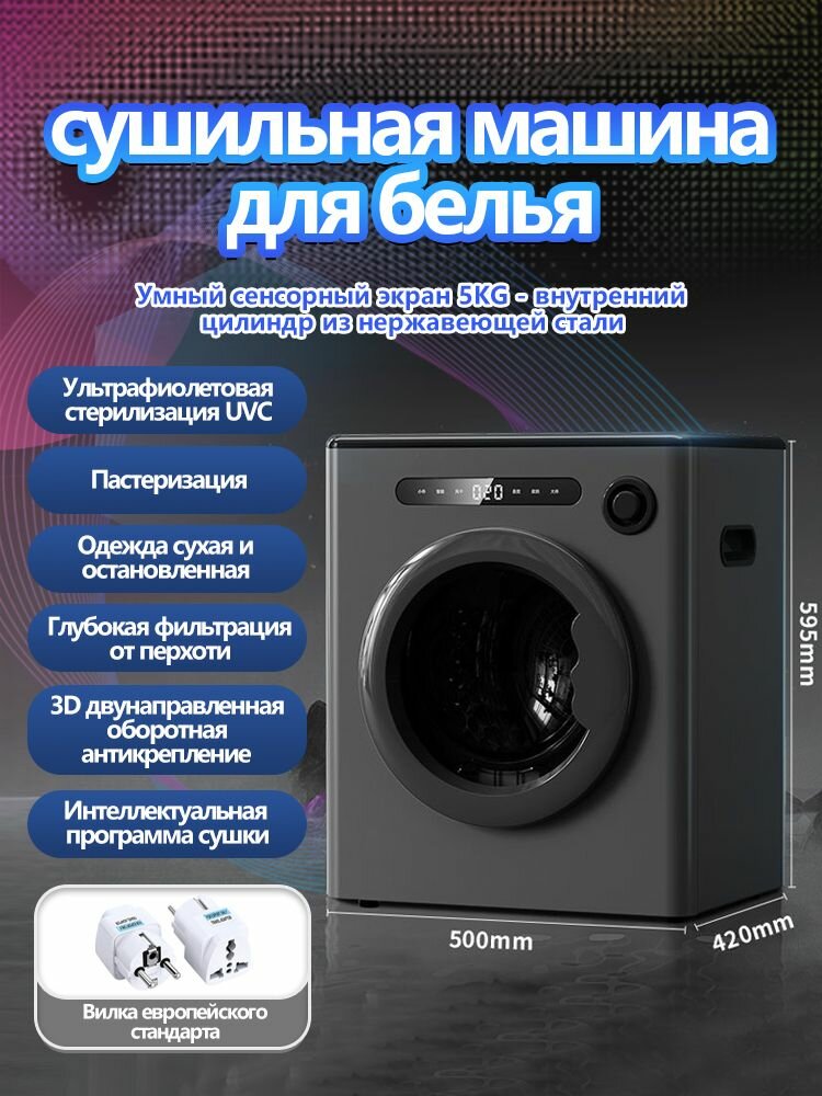 Сушильная машина для белья JUNTOU, загрузка 5 кг, 6 программ, регулятор температуры, Электронный дисплей, турбосушка, тихая работа. информация: