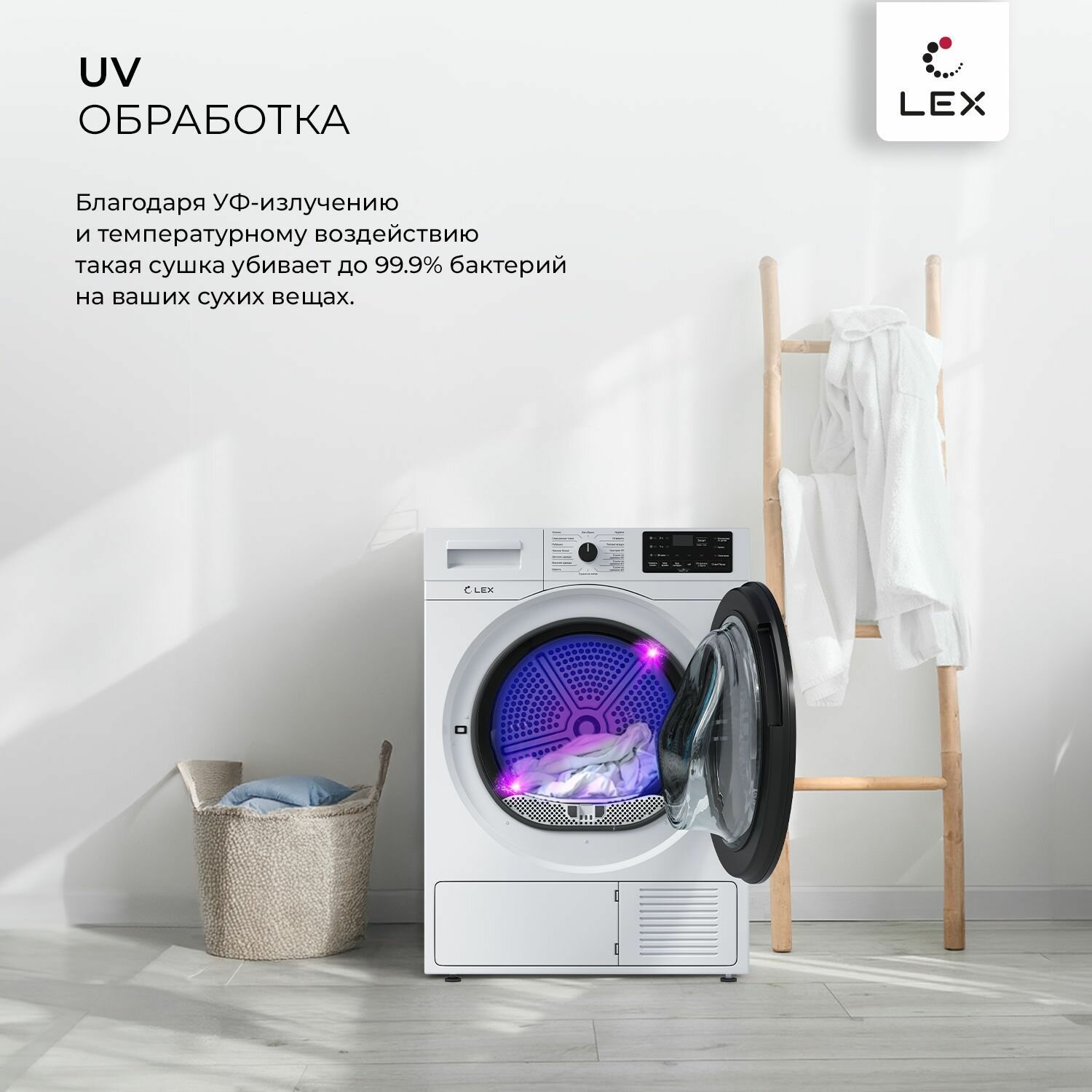 Сушильная машина Lex LDM10WD, белый, 10 кг, 16 программ, класс A++, таймер, дозагрузка белья
