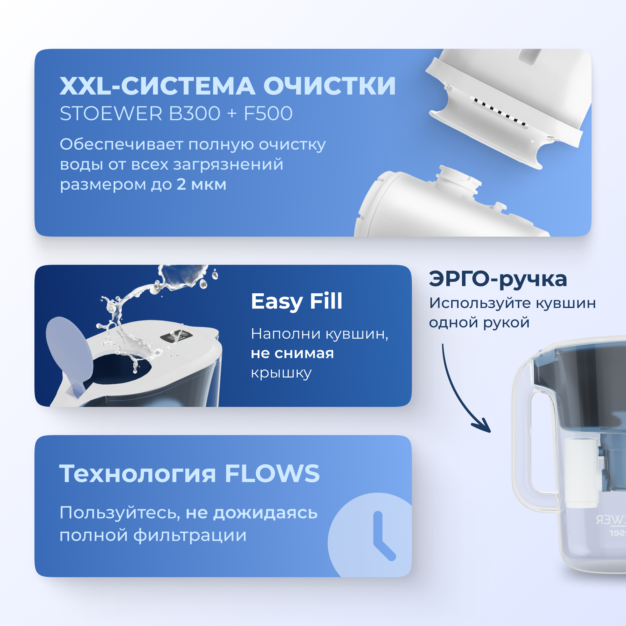 Фильтр-кувшин для воды STOEWER штоер Rhein 3500, с минерализацией, 4 ступени очистки 2 095 ₽