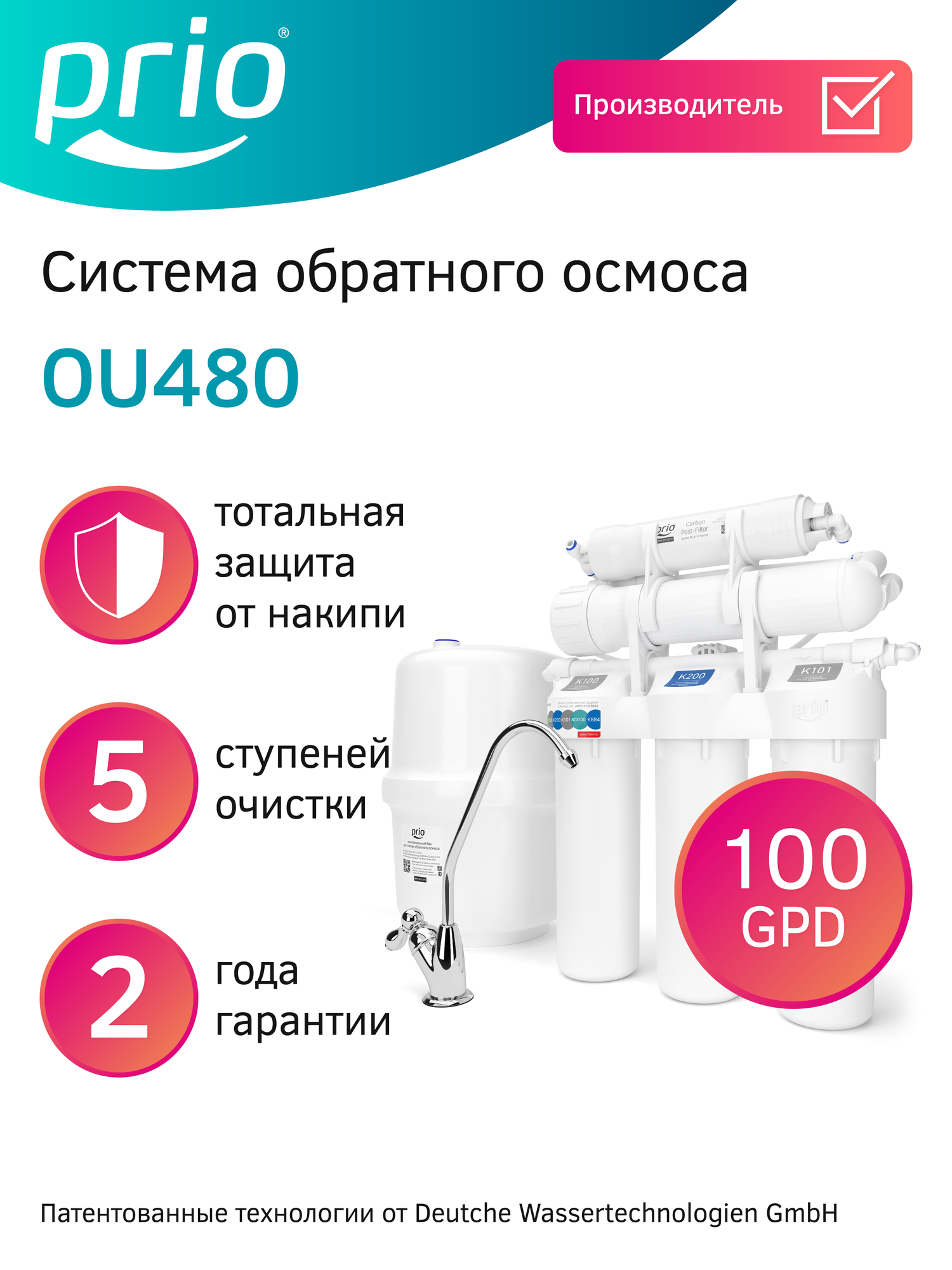 Фильтр для воды под мойку система обратный осмос Prio OU480M, 150GPD, 5 ступеней, SL 10" - тотальный барьер от гейзера загрязнений 11 837 ₽