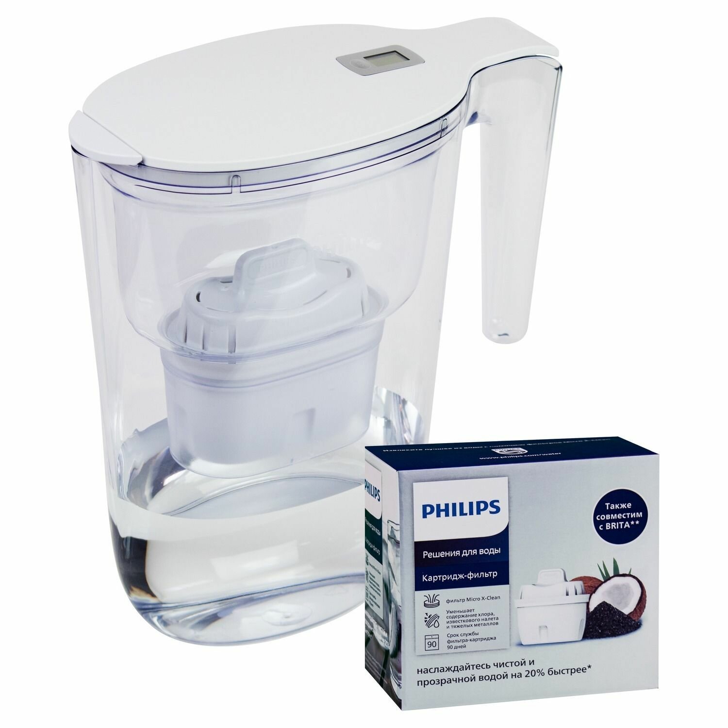 10 цен на Комплект: фильтр-кувшин Philips AWP2935WHT(картридж внутри), 2,6 литра+сменный универсальный картридж AWP210, 1шт