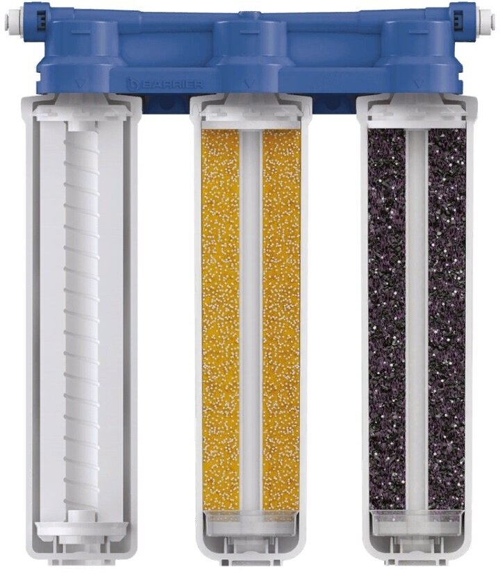 БАРЬЕР эксперт Жесткость х2, фильтр под мойку для очистки воды, двойная защита от накипи, трехступенчатый, быстросъемный (без крана)