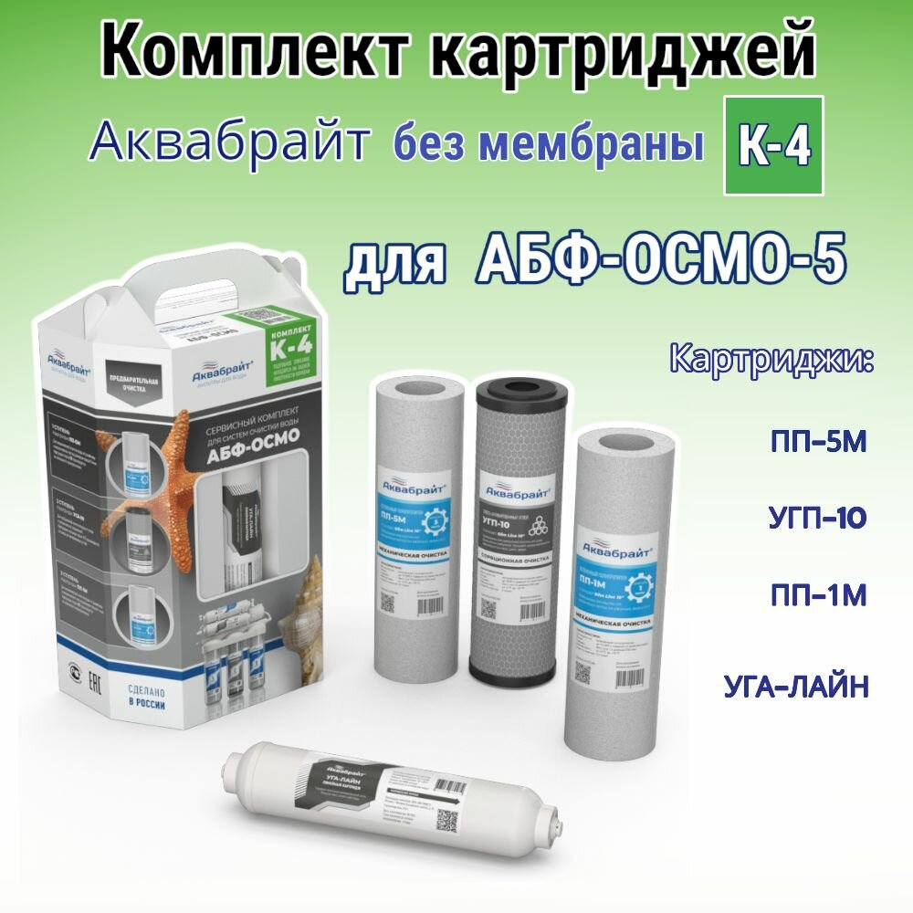Комплект картриджей для очистки воды Аквабрайт К-4 (для абф-осмо) без мембраны информация: