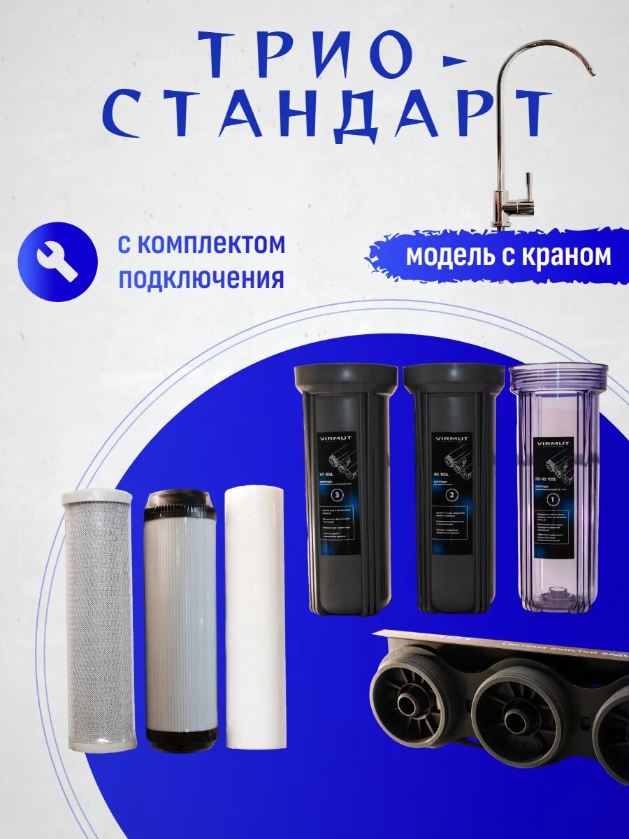 Отзывы на Фильтр проточный под мойку с краном кухонный Трио Стандарт Virmut, универсальный фильтр воды под мойку