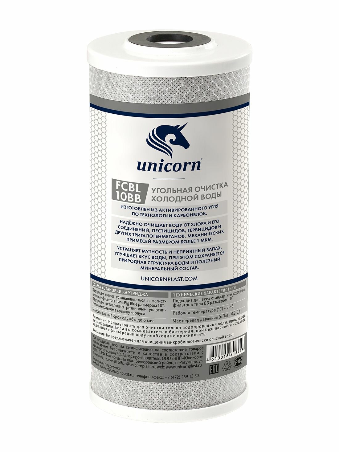 Картридж угольной брикет (с прессованным активированным углем) для фильтра воды FCBL 10ВВ Unicorn информация: