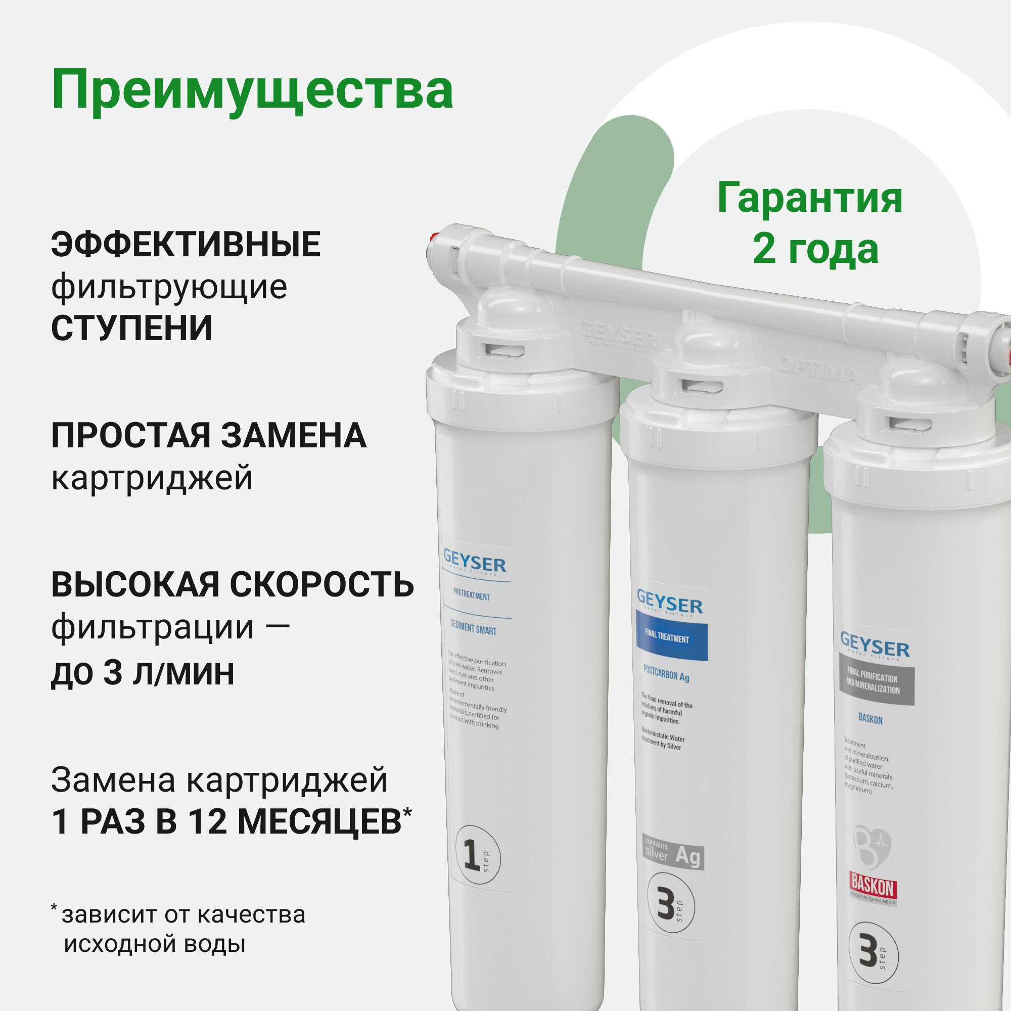 10 цен на Фильтр для воды под мойку Гейзер Оптима, без крана, обогащает воду полезными микроэлементами, 66033