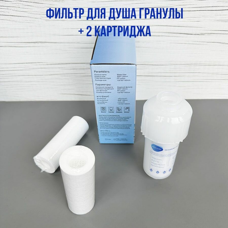 10 цен на Фильтр для душа (с гранулами) + 2 картриджа, от жесткой воды и хлора (многоразовый).